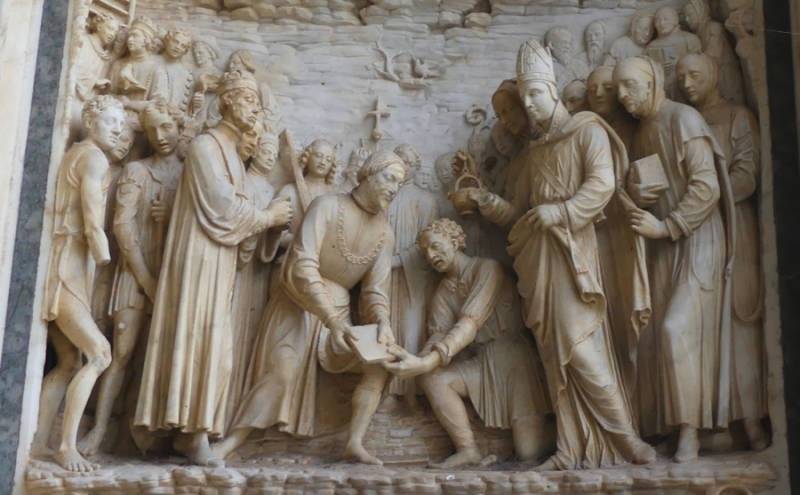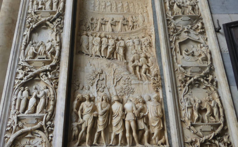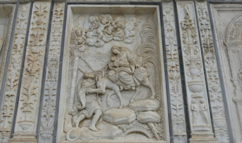 En inderdaad werkelijk schitterend , vooral door de façade die helmaal uit beelden reliëfs bestaat, de hele voorgevel is bekleed met religieuze afbeeldingen.