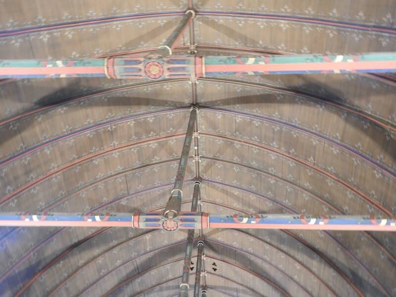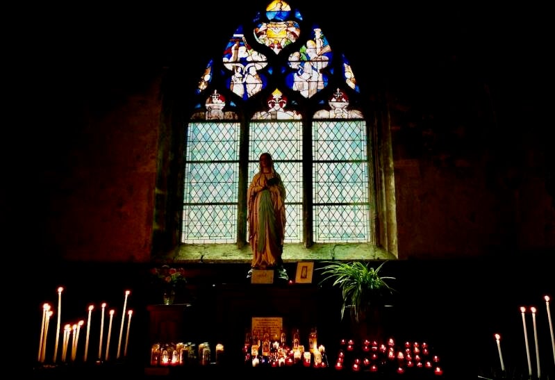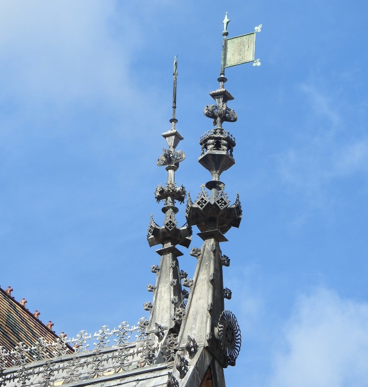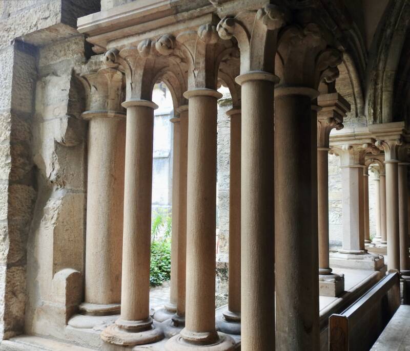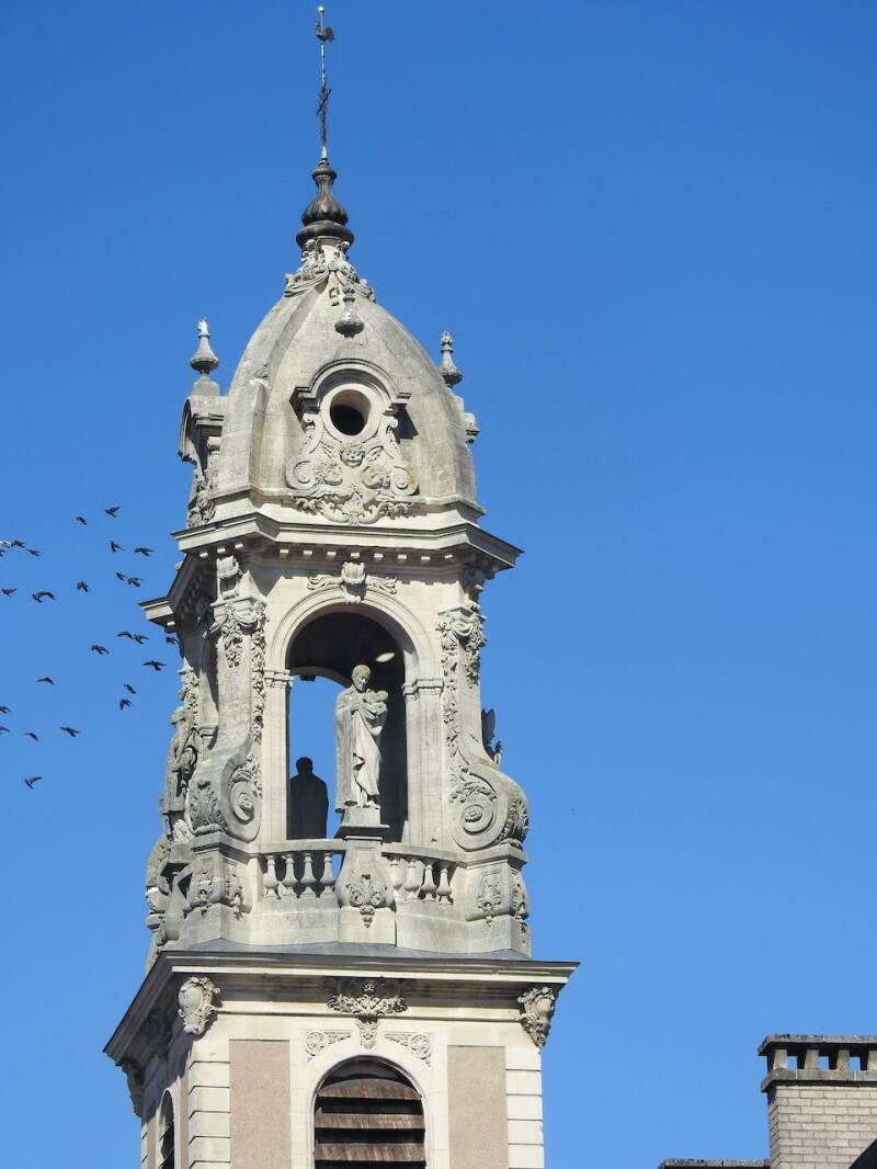 We hebben nog door een stukje oud centrum gelopen wat we nog niet gezien hadden en zijn toen naar de kerk gegaan. Die oogt somber gotisch van buiten, het interieur bevat enkele gebrandschilderde ramen. Buiten gekomen was men de markt aan het afbreken en waren wij vergeten geitenkaasjes te kopen.