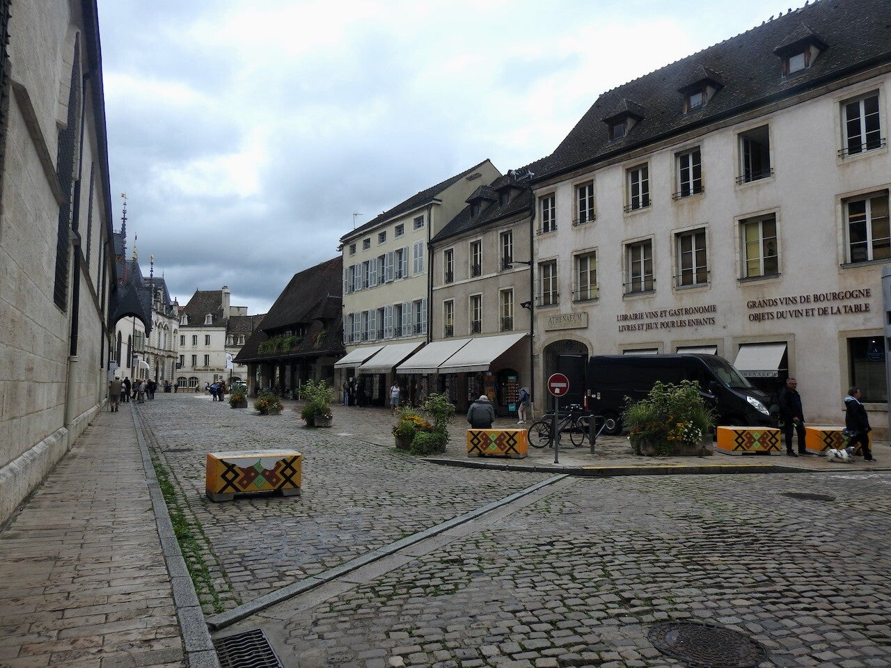 Het was vanmorgen een mooie route, slechts 25 km lang naar Beaune. Eerst kwamen we langs het kasteel van Rochepot die mooi tegen een heuvel ligt, het dakmozaiek is helaas vervaagd.We reden door en langs mooie wijndorpen, o.a. Meursault, Pommard en Volnay, daarom duurde de rit ook een half uur, de straatjes waren soms smal. De omgeving was mooi heuvelachtig, jammer dat de lucht helemaal bewolkt raakte. We zijn naar de cp bij het centrum van Beaune gereden, daar hebben we vaker gestaan. Er dreigde regen maar we konden eerst nog boodschappen doen voordat het licht begon te regenen. Een paar lekkere dingen gekocht bij de Carrefour die slechts op een paar minuten afstand lopen van de cp ligt. Bijzonder is het potje mosterd met anijs en citroen die we kochten, maar eens kijken bij welk gerecht we die gaan gebruiken, dat zal wel als we weer thuis zijn. Naast een prijzig stukje oude comté kaas hebben we ons getrakteerd op een fles witte Bourgogne, gelukkig was hij €,2,- afgeprijsd……. Die kaas en de Bourgogne is voor later op de avond.