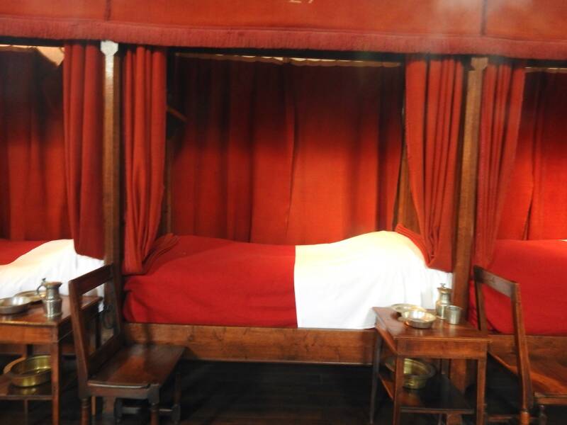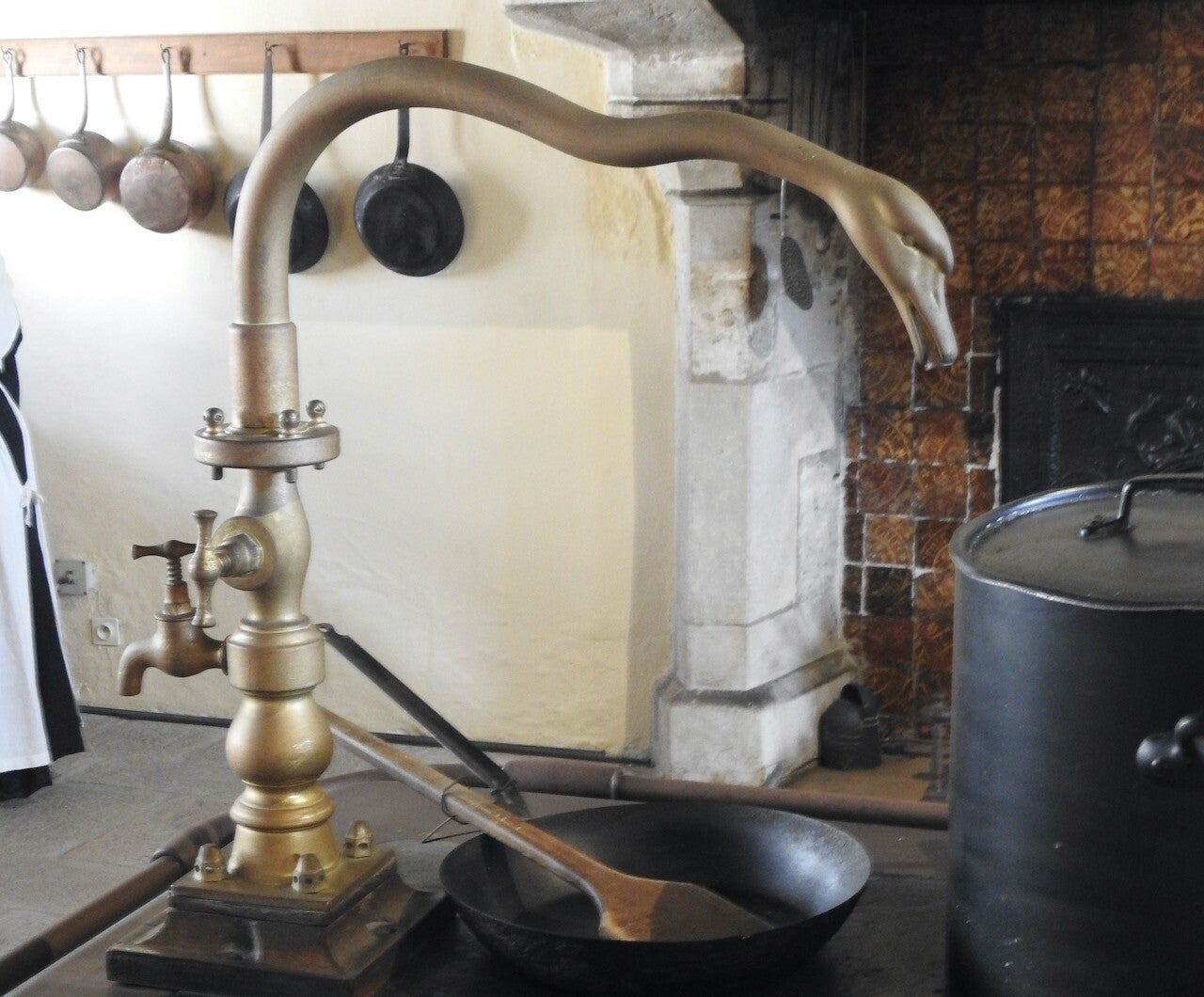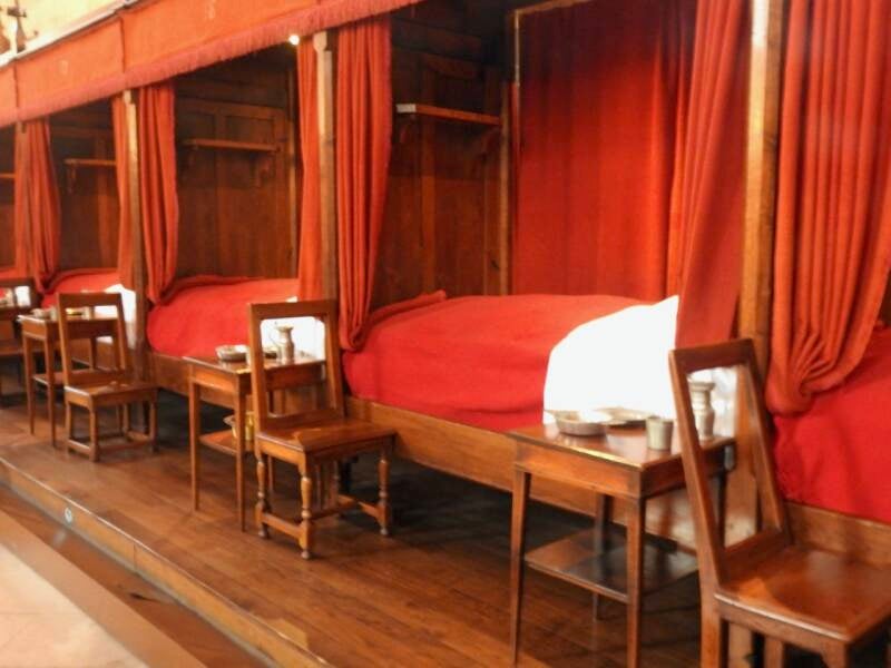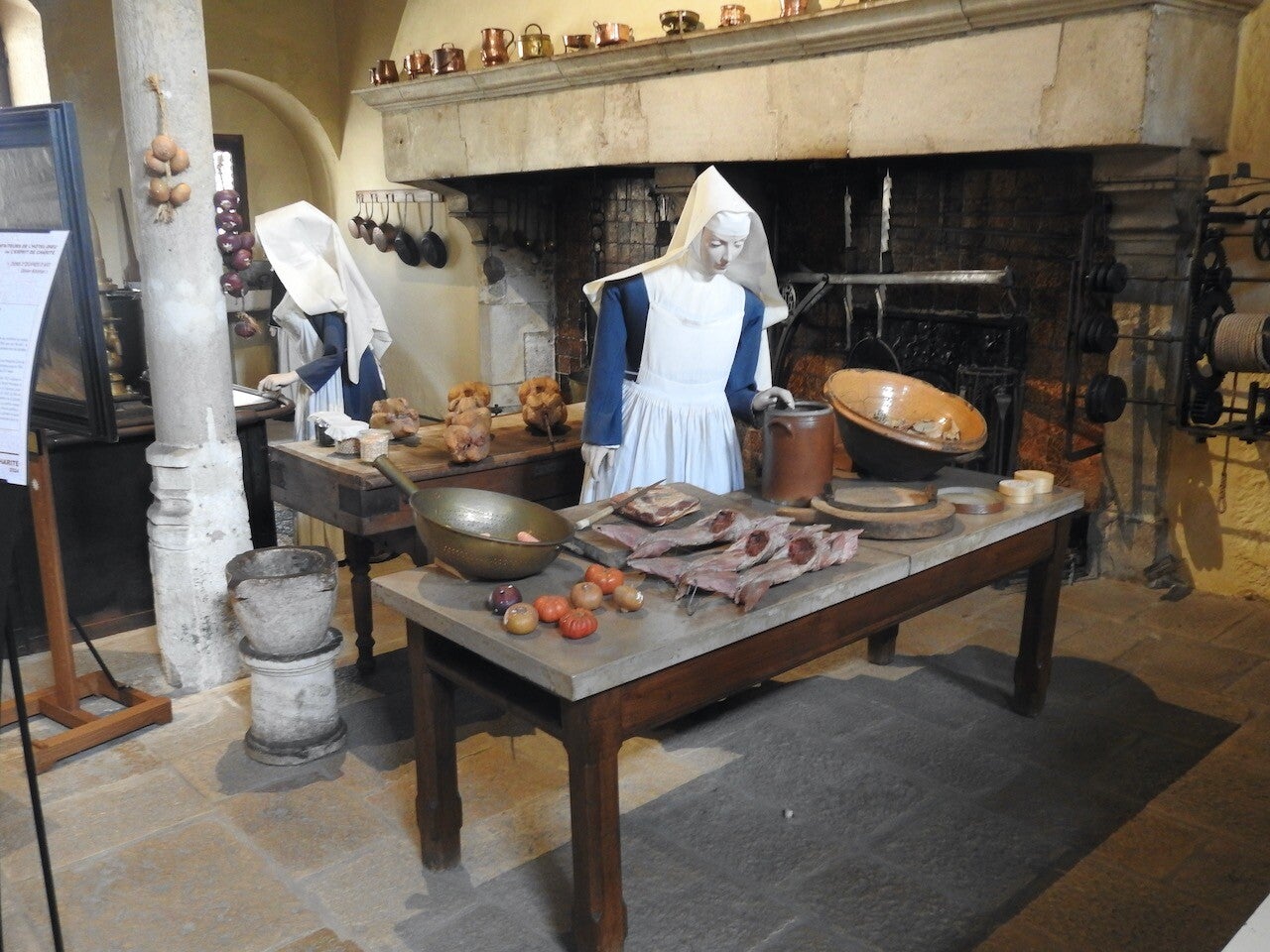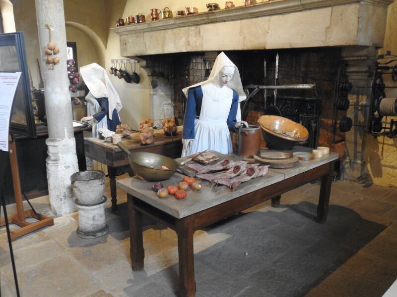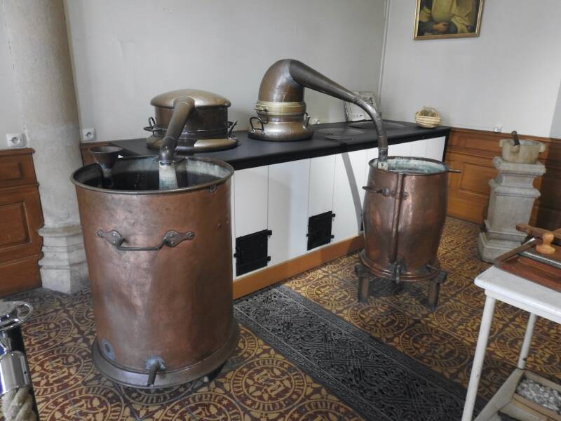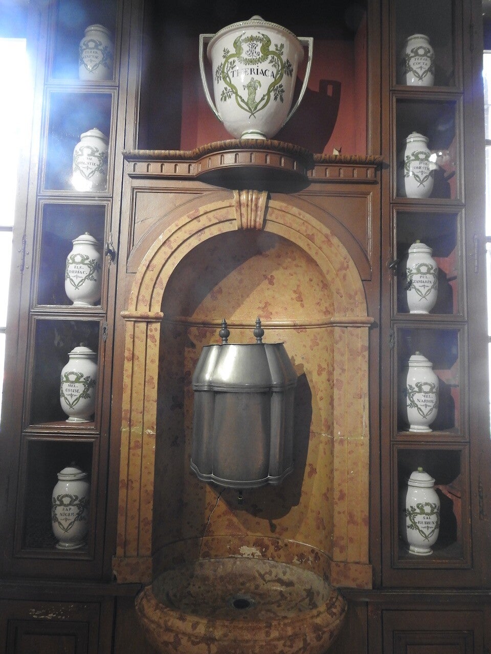 Er is een keuken die helemaal gereconstrueerd is. Wij vonden de kranen bij de oven prachtig. Daarna loop je door naar de 18e eeuwse apotheek en daar zie je nog een verzameling vijzels kruiken en potten waarin een mengsel wat toen ter genezing diende. Wij kunnen ons weinig voorstellen van de genezende werking van bv terpentijn.
