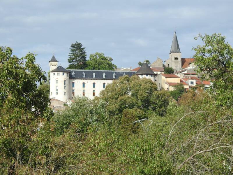 Na de lunch brak de zon door en de temperatuur liep toen snel op naar een graad of 22. Dus voor het eerst in een aantal dagen konden we weer heerlijk in de zon lezen, het dorp hadden we al van de verte op de foto gezet, we zaten prima. Na half vijf werd het wat bewolkt en ik werd toch nieuwsgierig naar het dorp die ook een historisch centrumtje moet hebben. Omdat het dorp een stuk hoger ligt wenste Everdien mij succes en ik ging alleen, aanvankelijk langs een pad met walnotenbomen, nog niet rijp, op stap richting het dorp wat maar 17 min. lopen zou zijn naar de kerk.