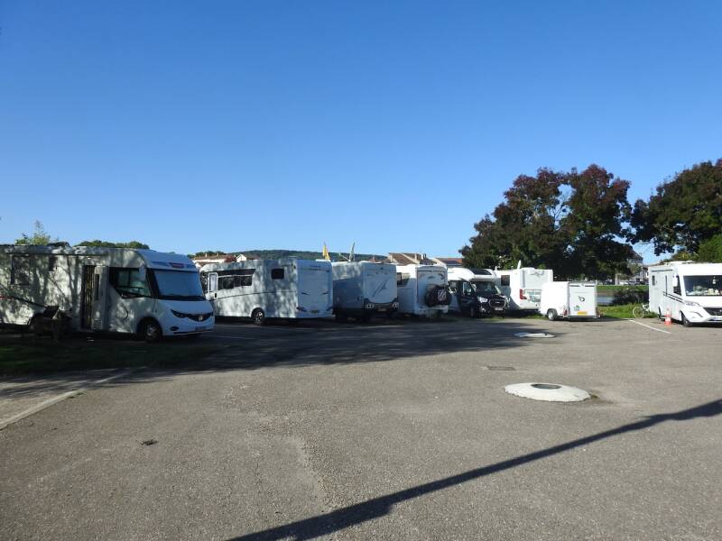 Het is altijd vol in Pont a Mousson maar omdat we er al om 10.00 uur waren konden we een plaats uitkiezen aan het water, naast 2 Belgische campers, zowel de mannen als vrouwen blijken verwoede vissers te zijn, gezellige mensen. Ze vissen op brasem en meerval , het enige wat we ze hebben zien hangen was een ondermaats visje., een voorntje.