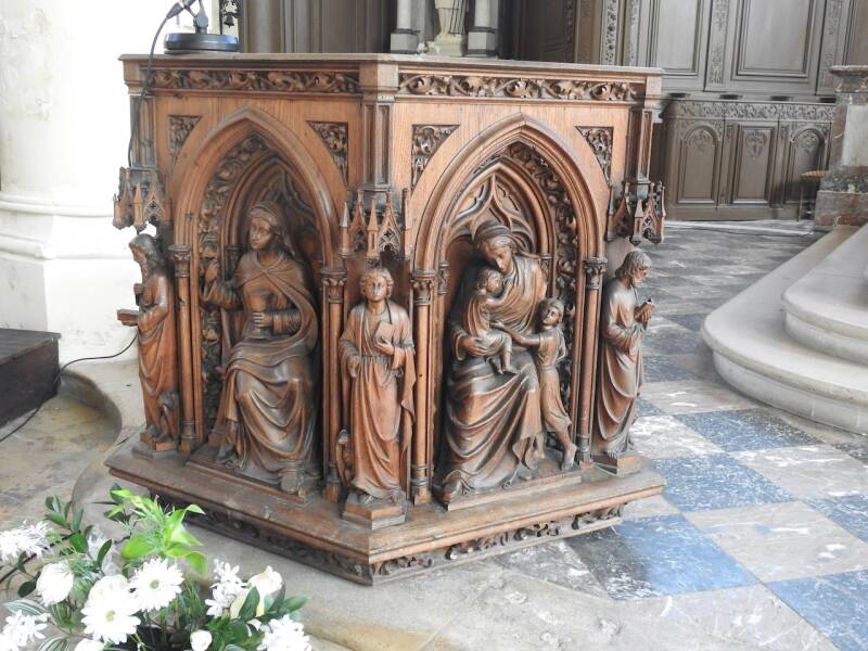 We zijn rond het middaguur de kerk gaan bezichtigen , de enige kerk die open is trouwens. Nu zijn we , zoals we gisteren al zeiden, al vaak in Pont a Mousson geweest. Meestal kwamen we de cp niet af, we waren er louter ter overnachting als we terug kwamen uit het zuiden en dan de volgende dag nog 6 uur moesten rijden naar huis ( en geen 5 zoals ik gisteren schreef) Of om wat te eten , een terrasje te pikken maar die kerk hebben we nooit bezocht. In de kerk Saint Laurel is een tamelijk bijzonder retabel te bezichtigen. Het retabel heet Philippe de Gueldre (Filippine van Gelderland) omdat het in haar opdracht werd vervaardigd in de 16e eeuw in Antwerpen Filippine van Gelderland was de dochter van de hertog van Gelderland.