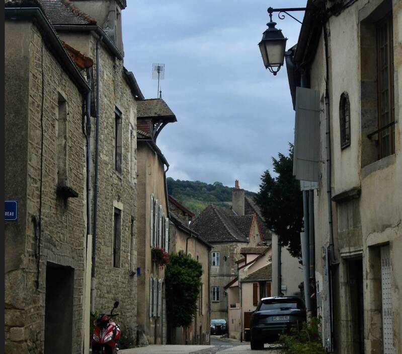 De weersvooruitzichten zijn wat verbeterd dus we gaan niet richting Troyes zoals we eerst van plan waren. Vandaag nog wat minder weer gehad en daarna blijft het eerst fris maar vanaf woensdag een paar dagen een soort nazomer met temperaturen rondom de 23º. Dus gaan we toch grofweg langs Beaune, Langres, verder naar het noorden. Vandaag zijn we naar Nolay gereden , eerst via een wat smallere D weg, daarna een stuk tolweg en vervolgens weer een goede weg, de D906. Af en toe hadden we lichte regen onderweg maar toen we tegen 12 uur, na bijna 2 uur rijden over 120 km in Nolnay kwamen bleef het een paar uur droog . De laatste 30 km naar Nolay reden we door een mooie heuvelachtige omgeving en toen we Nolay naderden zagen we de eerste wijngaarden, we reden op de route des Grands Crus, het water liep ons al uit de mond.