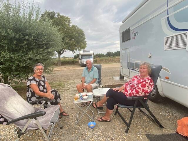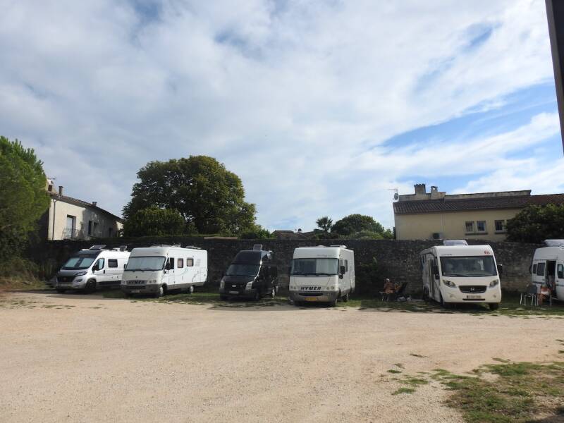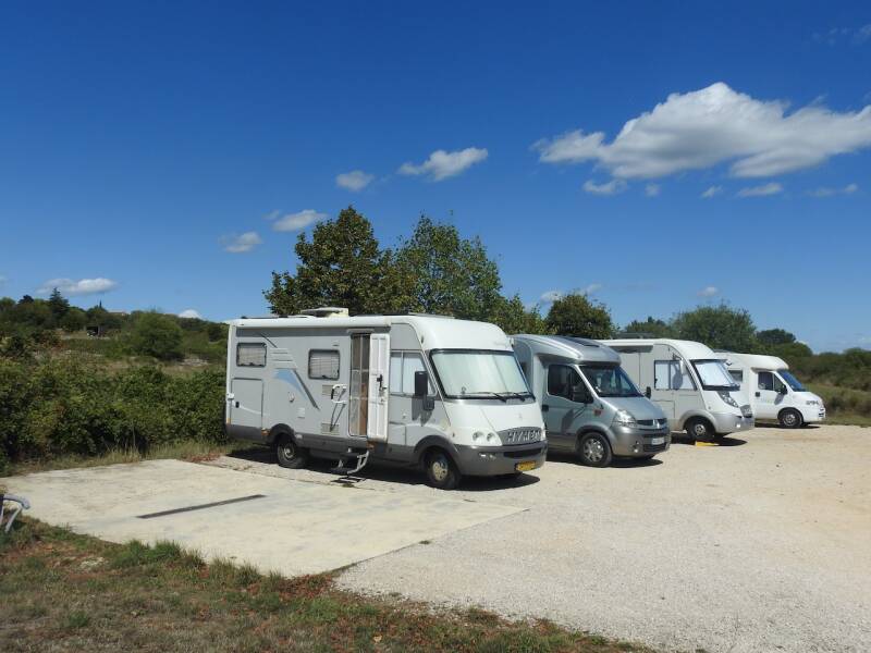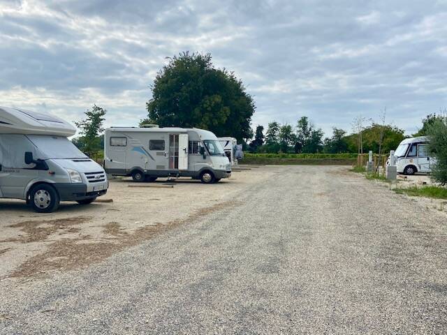 Het was 14 km rijden naar Aramon, alweer een cp van de organisatie Camping Car Parc (CCP ) we staan daar dan in ieder geval aan de stroom tijdens het verwachte slechte weer met zware onweersbuien. We durven niet te hopen dat we de dans weer zullen ontspringen. De cp ligt net buiten het stadje wat aan de Rhône ligt. Dat klonk goed, totdat we er kwamen en het een desillusie was. Afgelegen, een oude camper buiten de poort, een tentbewoner aan de andere kant en geen verlichting en verder verlaten. Bovendien deed het water het niet, we moesten toch laden en lossen. We hebben gebeld en het zou in orde worden gemaakt, maar we hadden allebei een unheimisch gevoel. ’s Nachts als er noodweer komt sta je daar alleen in het donker, de verwachte hoeveelheid regen is toch aanzienlijk, je kon nu al zien dat er grote plassen hadden gestaan. Weer gebeld dat het water het nog steeds nietndeed en dat we naar een andere plek wilden van CCP in Bellegarde en dat we eigenlijk niet wilden betalen als dat mogelijk was.