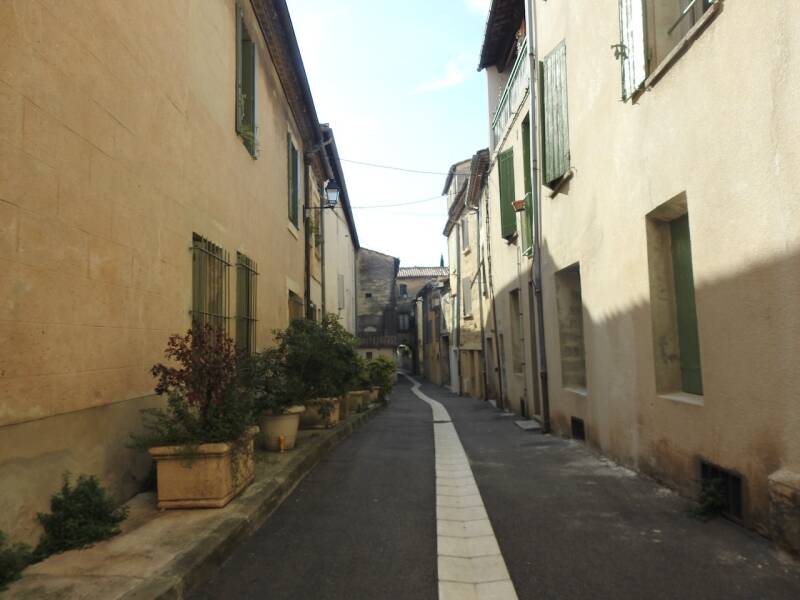 Gisterenavond liep de cp vrijwel helemaal vol, er kunnen 24 campers staan. We hadden het plan om vandaag naar Chusclan te rijden, nog geen 7km hier vandaan. Daar hebben we ooit bij een wijndomein gestaan, de cp bestaat nog steeds. Maar omdat het hier al zo druk is en we uit ervaring weten dat in de weekenden de cp’s altijd drukker bezet zijn dan door de week, kwamen we tot de conclusie dat het eigenlijk gekkenwerk is om zo’n piseindje met de camper te rijden. Dit ook omdat we hier prima staan. Waarom gaan we niet met de fiets het dorp bezoeken, de mistral zou immers gaan liggen?”