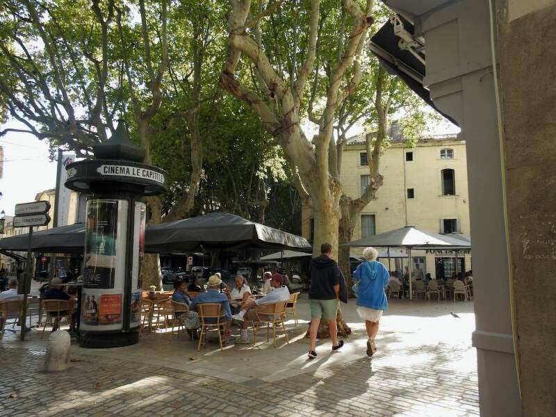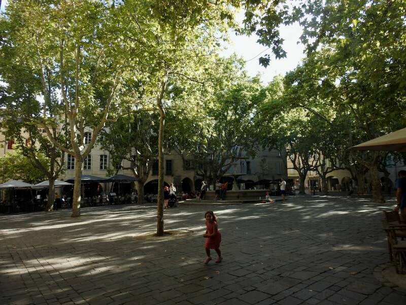 En we staan ook nog eens bij een schitterend stadje, met 5 min. lopen sta je in het centrum. Het was al tamelijk laat in de middag maar toch zijn we nog even het stadje ingewandeld om een eerste indruk te krijgen. Wat een mooi stadje, een heerlijke Zuid Franse sfeer, volle terrassen , een heel leuk plein, mooie gebouwen, leuke winkels. Eind goed al goed zouden we bijna zeggen, daarbij het verwachte slechte weer maar even uit het oog verliezend.