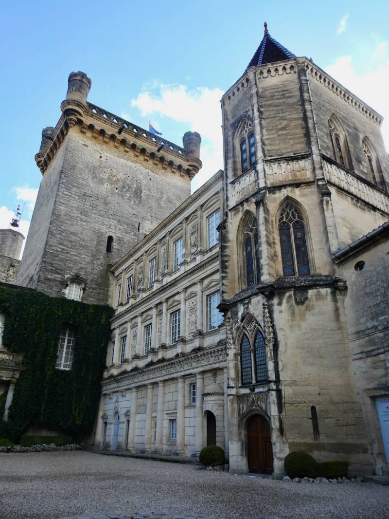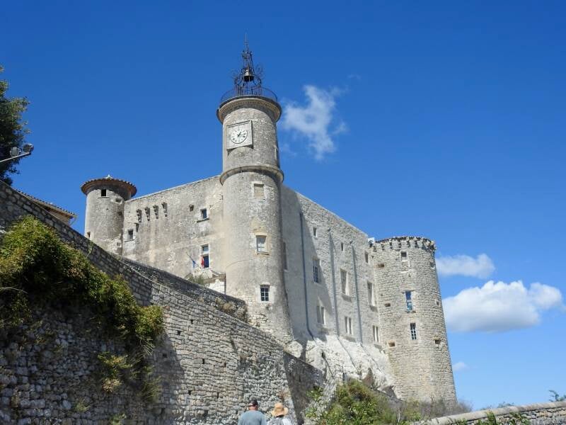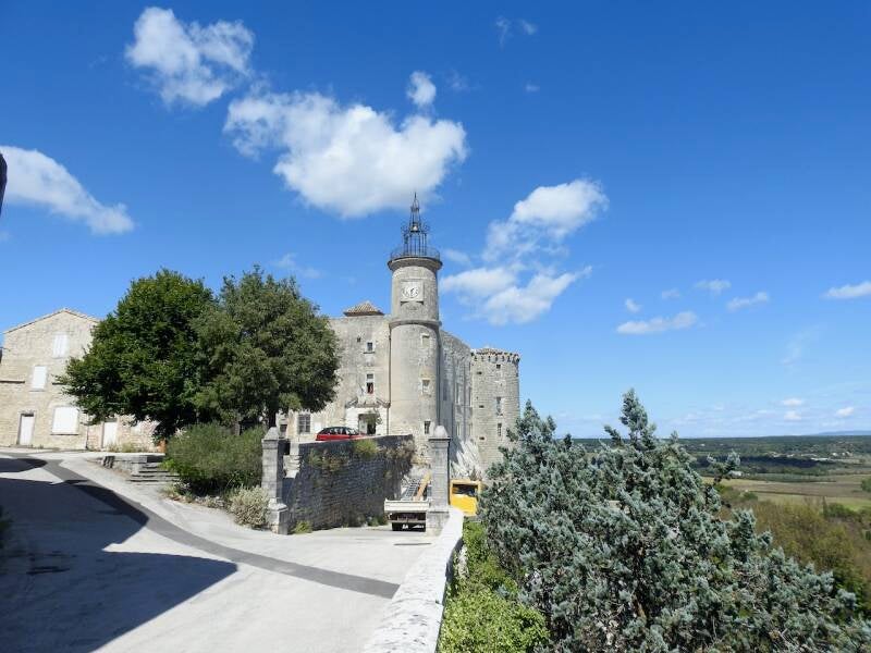 We wilden eigenlijk nog een dag blijven in Uzès maar toen we boodschappen hadden gedaan, besloten we 20km verder te rijden naar het dorp Lussan. Ook behorend tot de Plus Beaux Villages van Frankrijk en we zijn daar via een mooi weggetje, die deels langs een kloof liep naar toe gereden Daarna werden we een onmogelijk knollenpad, zo’n paadje waar we vroeger toen we jong waren bramen plukten langs het pad, naar de parking van het dorp geloodst. Eerlijk gezegd viel het dorp ons wat tegen, alleen het kasteel oogde mooi, dus wilden we wel gaan lunchen om 13.30 uur. Er was één restaurant en de prijzen waren niet afgestemd op eenvoudige pensionado’s. We hadden beneden het dorp bij een rotonde een soort wegrestaurant gezien, daar hebben we geluncht, we waren net op tijd voor de keuken sloot. Voor kip tandoori en een steak hachée met frites + een drankje, moesten we €25, betalen. Geen haute cuisine maar een goede kwaliteit/prijs verhouding zullen we maar zeggen.