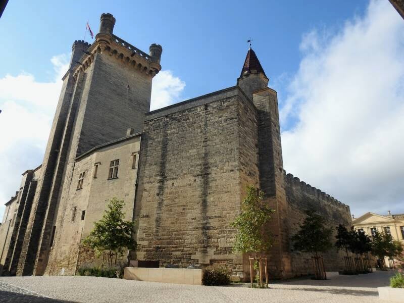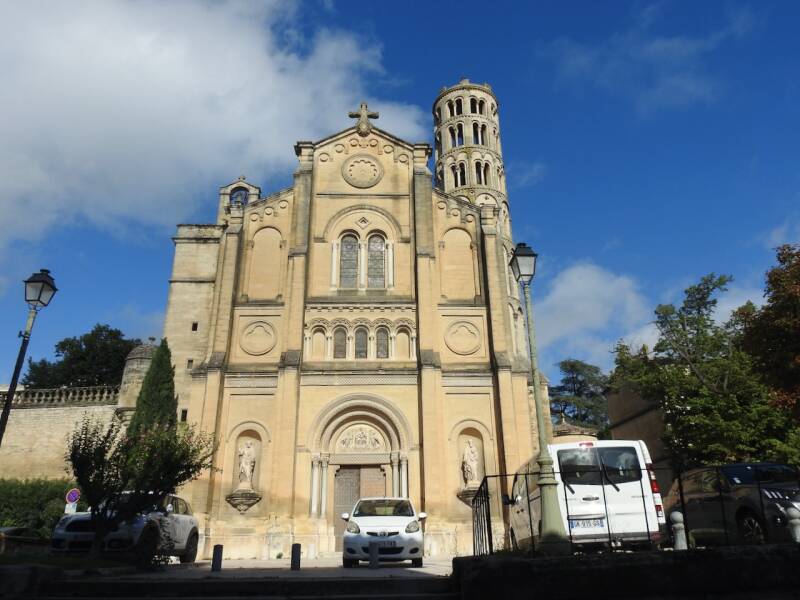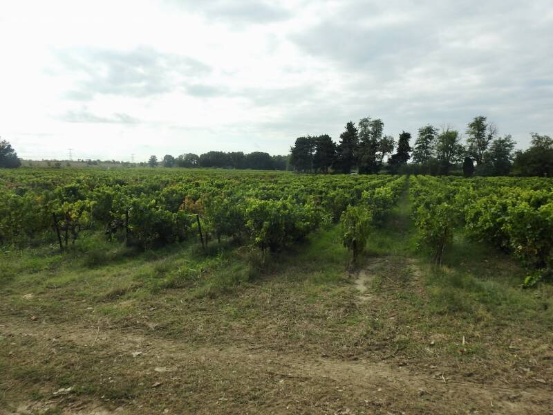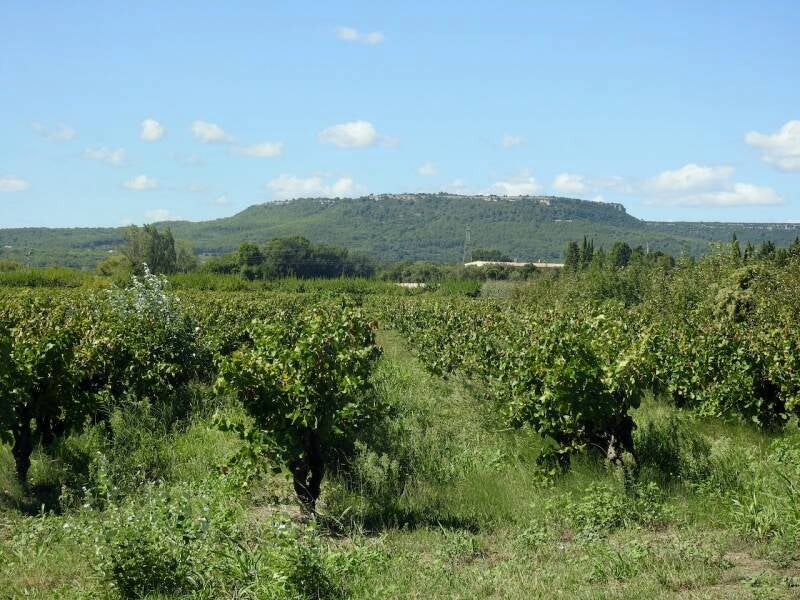 Het duurde niet lang of even daarna zaten we in de camper op weg naar Uzès , een stadje waar we eigenlijk later deze week naar toe wilden gaan. Niet dat het daar droog blijft, maar de regenhoeveelheden blijven binnen de perken. Via een deels prachtige route, ondermeer langs een kloof, kwamen we in Uzès aan waar we nu staan op het erf van het wijndomein Saint Firmin, en we hebben voor de 2e keer vandaag een blij gevoel over een plekje.