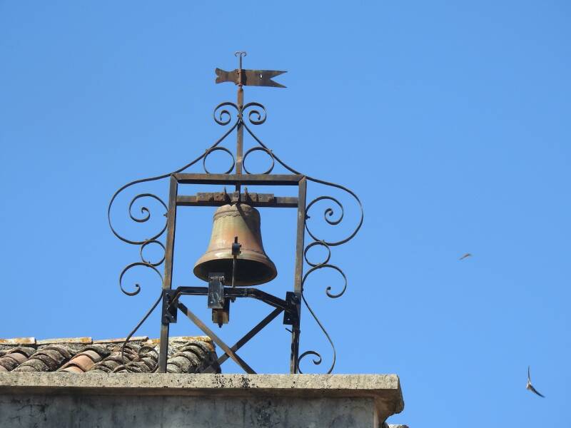 Er is een klein restaurant waar 2 mensen koffie zaten te drinken. Een kruidenierszaak die gesloten is en verder geen winkeltje te bekennen. Wat er wel is, is een grote hoeveelheid huiszwaluwen, ze verzamelen zich hier bij hun nesten onder dakgoten en ze zitten zelfs kort in 2 cipressen, we zien eigenlijk nooit zwaluwen in een boom zitten wel op een telefoondraad.