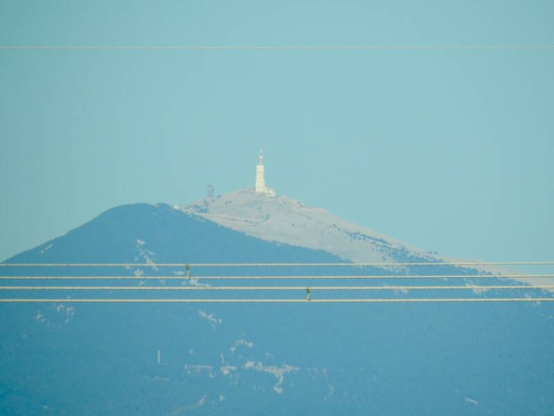 Het was een prachtige dag vandaag , door de Mistral is het onbewolkt geworden vandaag en het werd 25º. En omdat de lucht zo helder was konden we de Mont Ventoux, die toch een eindje verwijderd is, op de foto zetten, kompleet met kapelletje. Net als gisteren hebben we weer geborreld met George en Diny en het was weer heel gezellig.