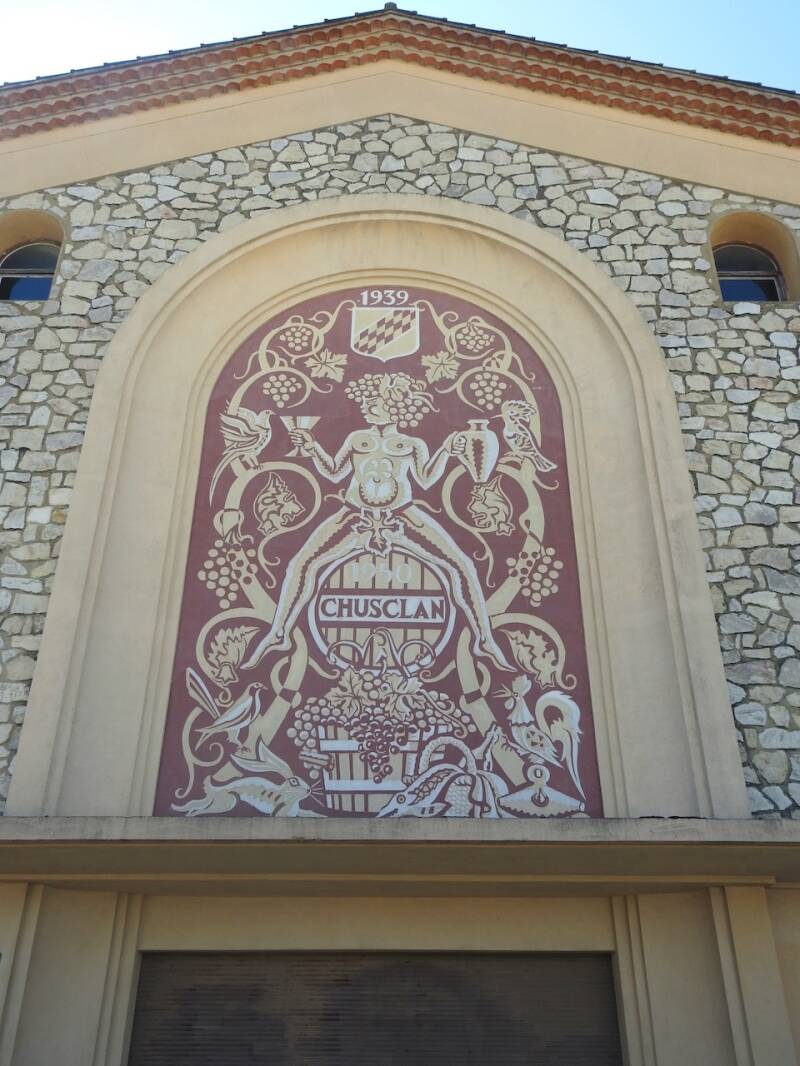 Via de brug over de Cèze kwamen we in het aardige dorpje Chusclan. We wilden daar gaan eten maar in het enige cafe/restaurant kon je vanwege een bruiloft alleen maar wat te drinken krijgen, eten, ho maar. Een alternatieve route in kaarten ingevoerd voor de terugweg en al snel reden we tussen de wijngaarden van de Côtes du Rhône door. Na Bordeaux is Côtes du Rhône het grootste wijnproductiegebied (35.000 ha) van Frankrijk en er wordt hoofdzakelijk (>95%) rode wijn geproduceerd. Het bleek dat lang niet alle druiven al geoogst waren, er hingen nog diverse wijngaarden vol met trossen. Er werd met een grote machine geoogst en iets verderop een kleine tractor met een laadbak erachter en 3 plukkers, met de hand. Ik wilde een foto maken, voordat ik hem goed scherp had gesteld werden ze boos, misschien waren de plukkers goedkope illegale werkkrachten. De rest van de terugweg ging alleen maar via een pad tussen de wijngaarden door, leuk. En we hebben een micro oogst druiven geplukt, hardere velletjes en meer pitten dan consumptiedruiven. Je zou dus zeggen misdaad loont niet , maar ze zijn heerlijk zoet. In Codolet bleek het enige restaurant gesloten, je hebt van die dagen, dus kookt Everdien vanavond. ( tomatensla met oa olijven, ingedikte balsamico en gebakken aardappels met een filetlapje. Morgen weer een poging bij een ander dorpje waar we heen zullen gaan, om nou naar een grotere stad te rijden louter voor een restaurant? We hebben wel eens gekkere dingen gedaan, 100 km omgereden om te eten bij een tapasrestaurant in Spanje waar we eerder voortreffelijk gegeten hadden en omdat het dorp ook nog eens een prachtige naam had , Chinchilla de Monte Aragón, dit even geheel ter zijde, hij kan het niet laten….