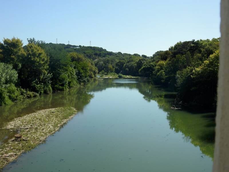 Het riviertje de Deze bij Chusclan lijkt nu een rustig stromende rivier. Hij heeft in het verleden wel voor overstromingen gezorgd.
