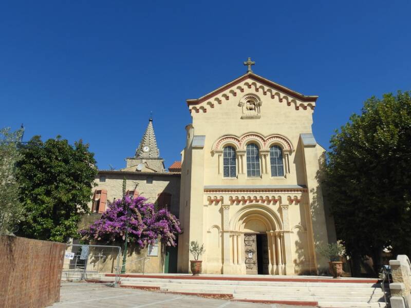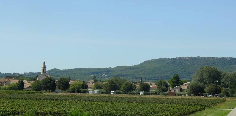 We zijn in Codolet gaan staan, op een cp van CCP, dat vanwege de onweersbuien die nog steeds voor vanmiddag verwacht werden. We staan aan de stroom en op verharde ondergrond met wat grind. Rondom zijn wijngaarden en we kijken naar de kerk van het dorp door het voorraam. Onderweg hadden we de gevolgen gezien van het noodweer van zondagnacht, water op de landerijen en vlak voor Bagnols werd er zand van de weg geschoven met een kleine bulldozer . Codolet is een aardig dorpje, maar we zijn verwend de afgelopen 2 dagen. De Rhône loopt hier vlak langs en Codolet ligt aan het kleine riviertje de Cèze. Er loopt een fietspad langs de cp waar je o’a naar Chusclan kunt fietsen. We willen eindelijk eens gaan fietsen morgen, als het tenminste lukt. Want na de buien van vanmiddag wordt er morgen 1 dag Mistral verwacht.