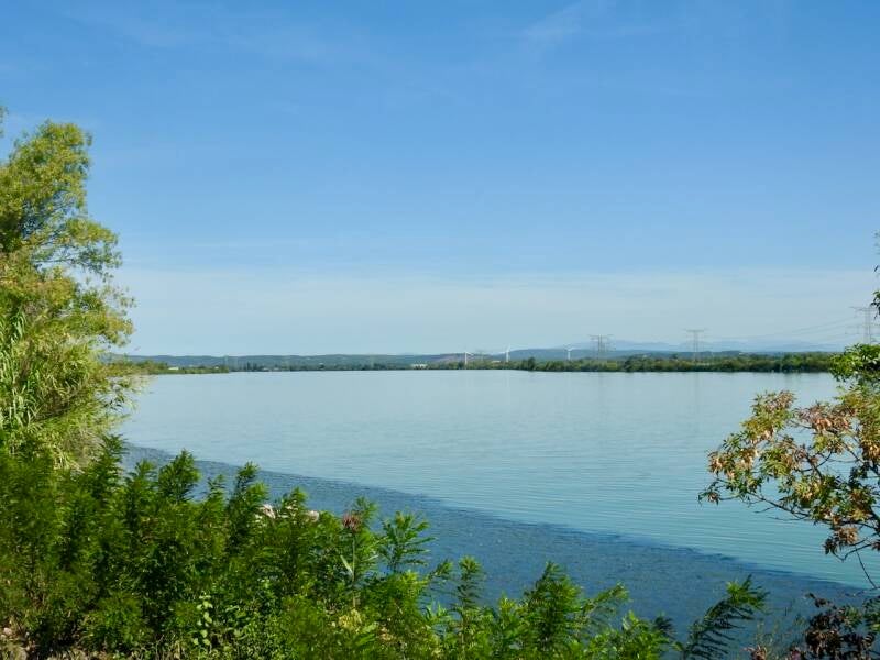 Langs de cp loopt het riviertje de Lôhne, die komt even verder in de Rhône uit. Nog iets verder mondt de wat grotere rivier de Cèze uit in de Rhône. Daar ben ik vanmorgen heen gewandeld, alleen want Everdien had de bedden verschoond en een handwas gedaan en had geen puf meer. Een mooie wandeling langs de Lôhne zonder echt spectaculair te zijn. Ik heb de uitmonding van de Cèze in de Rhône van een afstandje gezien, ik had inmiddels genoeg gelopen. En je kon er niet goed bijkomen Terug bij de camper bleek ik bijna 10.000 stappen te hebben gezet, dat is wel het maximum wat ik kan lopen, de hielspoor is nog niet helemaal over.