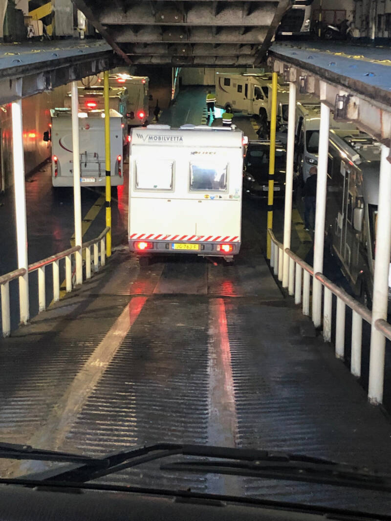 Toen we bij de boot stonden, zagen we een Nederlandse camper voor ons staan. Dat bleken Jaap en Diana te zijn die we 2 jaar geleden in Marokko hebben ontmoet.