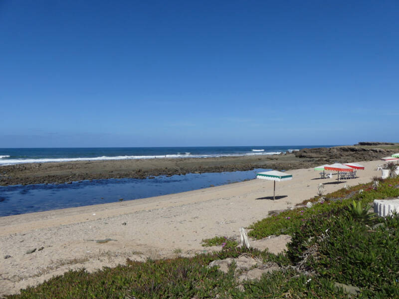 We staan op camping Ocean Blue waar we een paar maal eerder hebben gestaan, 270km gereden vandaag. We hebben de camping langzaam ingesloten zien worden door lage flats, er is hier veel gebouwd en dat wordt er nog steeds. We zitten in de buitenwijken van Mohammedia, alle beschikbare grond wordt bebouwd. Rondom de camping zijn de bouwwerkzaamheden vrijwel afgerond zodat je er geen last meer van hebt. Naar Marokkaanse begrippen is het een mooie camping, gelegen aan zee. Je kunt hier niet zwemmen in de Oceaan, er zijn te veel rotsen.