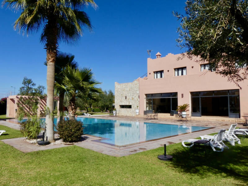 We zijn op camping Ferdaous gaan staan wat een km of 15 voor Marrakech ligt. We zijn een paar x op deze camping geweest en ze hebben zowaar het een en ander opgeknapt. Zo is er een splinternieuw sanitair gebouw gekomen, wordt het andere gerenoveerd en ook het receptiegebouw is nieuw. Het wordt hier soms de pauwen camping genoemd omdat er een paar pauwen lopen, maar dat zie je op nog een paar campings in Marokko. Waar ze w.s. wel uniek in zijn is dat in het campingwinkeltje wijn en bier wordt verkocht. Je hebt wel eens een restaurantje bij een camping waar ze alcoholica schenken maar hier wordt zelfs gevraagd als je brood komt kopen of je ook wijn wilt.