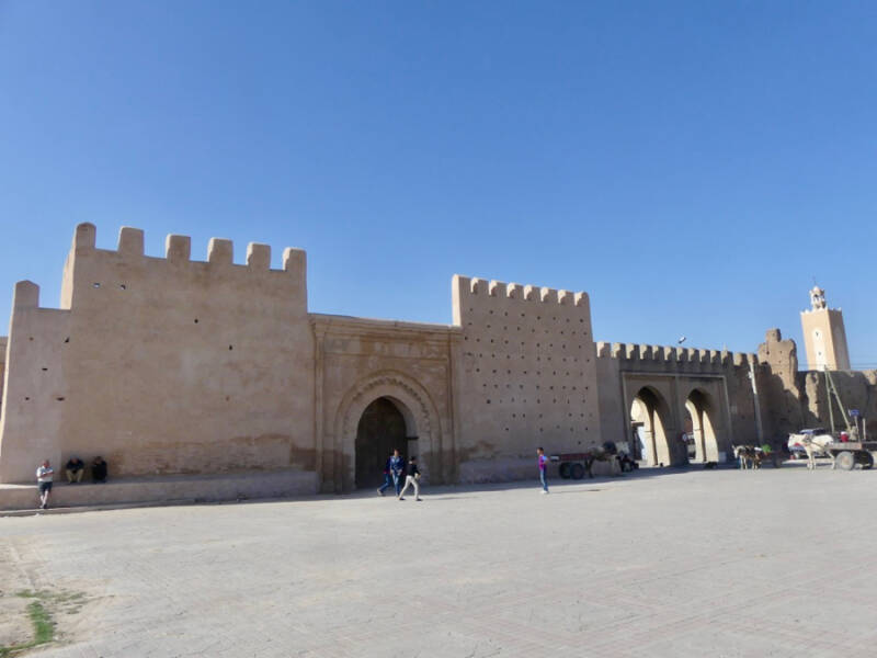 Vanmorgen een heerlijke wandeling gemaakt, voor een deel langs de imposante robuuste stadsmuren waarin een aantal toegangspoorten zitten. De lemen muren rondom Taroudant zijn maar liefst 8 km lang en zijn 6 tot 8 m. hoog en dateert uit het begin van de 18e eeuw