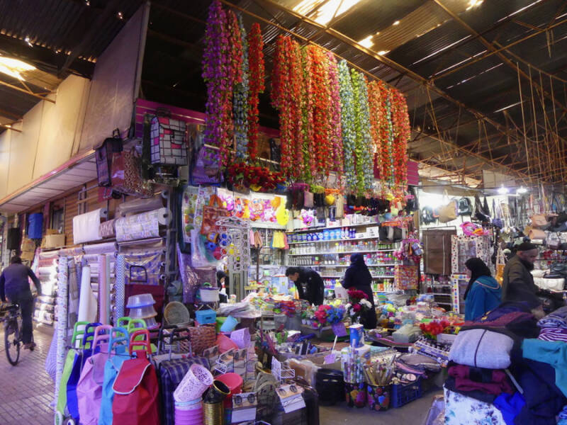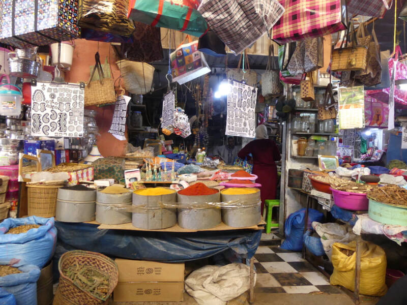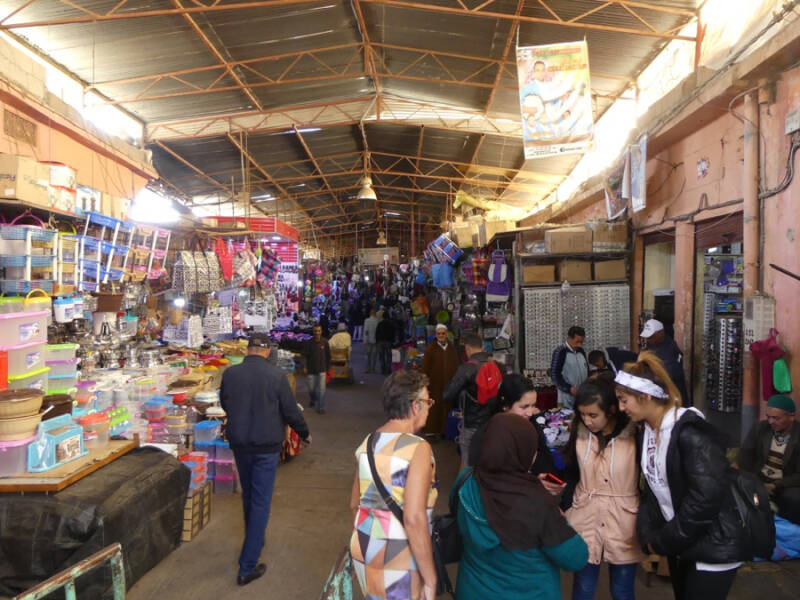 We zijn in de Berber souk geweest, die is niet zo leuk als de Arabische souk. In de laatste heb je vooral kunstnijverheid, in de Berbersouk vind je kruideniers-, drogisterij- en ‘Blokker’waren’.