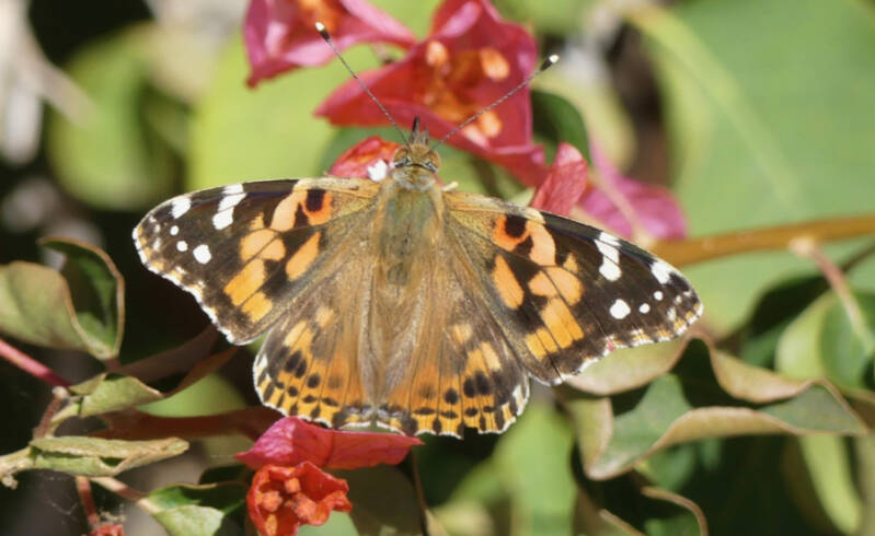 Nu is het winter in Marokko maar het doet eerder lenteachtig aan met zingende vogels, bloeiende planten, struiken etc. en volop vlinders. Hierop de camping zie je oa kolibrievlinders (moeilijk te fotograferen, vliegensvlug) en andere vlinders oa. de distelvlinder zie je hier veel. Dat is een trekvlinder, evenals de prachtige monarchvlinder die we afgelopen herfst in Griekenland hebben gezien. Dan ziet de distelvlinder er wat gewoontjes uit maar dat komt misschien ook dat we die vanuit Nederland kennen. In de herfst vliegen ze naar Noord Afrika en nog wat zuidelijker, op een hoogte van ongeveer 500m, daarom zien we ze niet tijdens hun trektocht. In de lente komen ze weer naar Europa.
