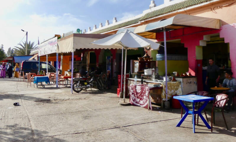 In de loop van de middag zijn we naar Chichaoua gereden en zijn daar op een parking gaan staan bij een sporthal en tegenover een politiebureau, een veilige plek om te overnachten. Aan het begin van de avond is er nog een Franse camper naast ons komen te staan. Chichaoua is de hoofdstad van de gelijknamige provincie en ligt op een kruispunt van wegen. Het ligt ongeveer even ver van Marrakech als van Essaouira. Er staan hier veel grand taxi’s, bussen en op een klein gebied staan erg veel restaurantjes voor de reizigers. Het stadje is onder meer bekend om zijn tapijten en lantaarntjes die er gemaakt worden.