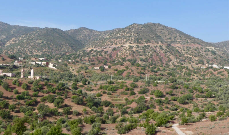 We lagen gisterenavond al vroeg in bed, ongeveer 22.45uur. Dat had niet te maken met het feit dat we geen tv-ontvangst hadden, het was zwaar bewolkt dus ongunstige omstandigheden voor de ontvangst. Nee, tijdens het wandelen gisterenochtend kreeg ik een wat onbestemd gevoel in de maag en voelde me licht misselijk. Aan het eind van de middag raakte ik flink aan de diarree en in het begin van de avond kwamen daar kotspartijen bij: buikgriep. We hebben alle twee daardoor slecht geslapen maar vanochtend voelde ik me al een stuk beter. We besloten naar de Ourika vallei te rijden, iets voorbij Marrakech, 285km.