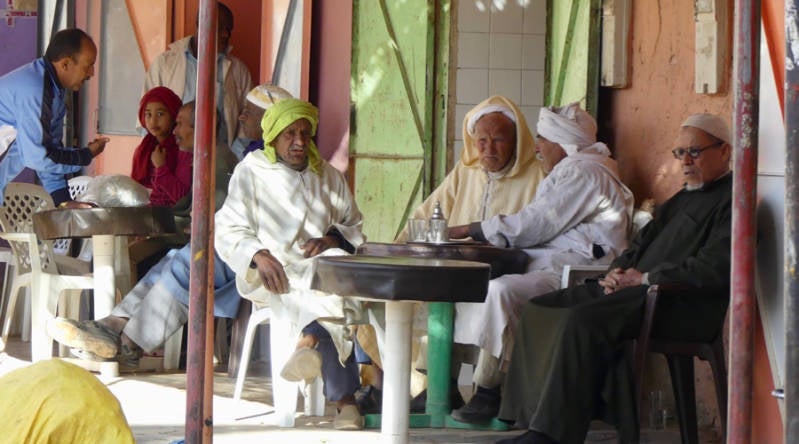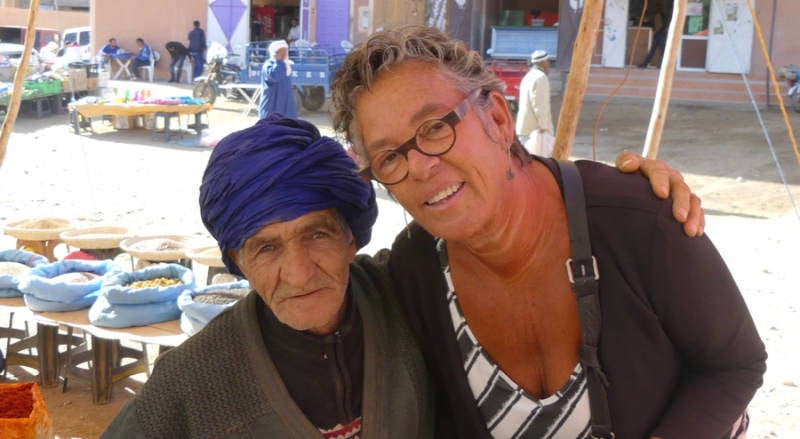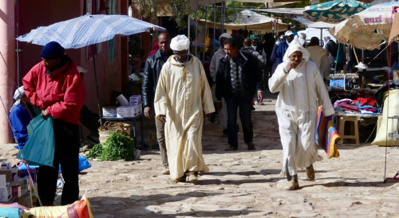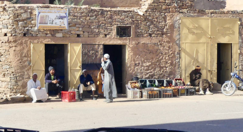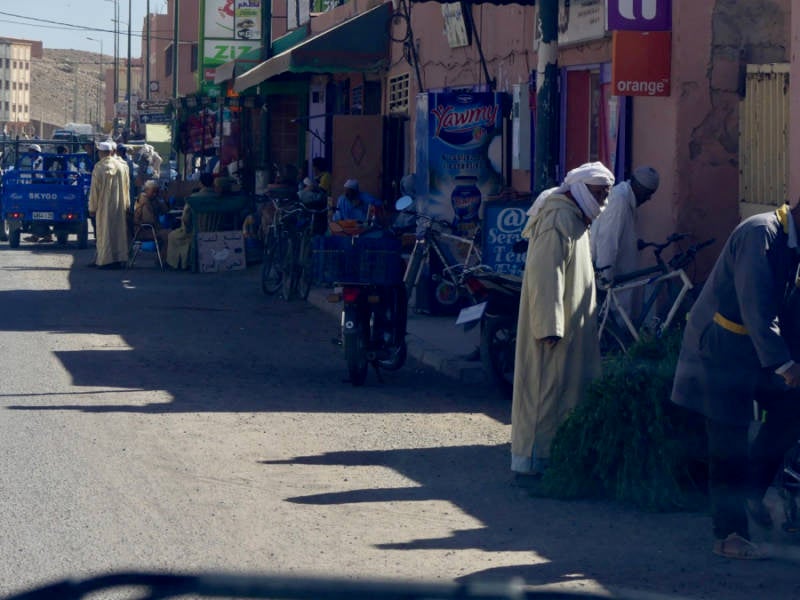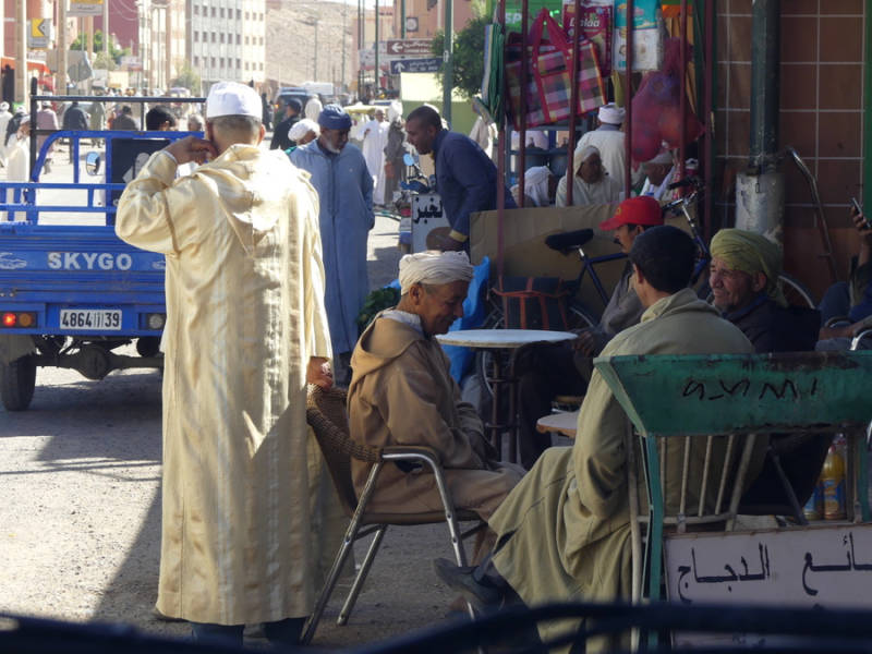 Vanmorgen zijn we eerst naar souk gegaan in Alnif, gisterenavond zagen we al dat er wat kraampjes werden opgebouwd. De souk had een authentieke uitstraling mede omdat het in het oude centrum van Alnif was, het oogde lekker rommelig. We hebben aardappelen gekocht, een beetje een traditie als we in Alnif zijn. Ooit hebben we gelezen dat de lekkerste aardappelen hier verbouwd worden, we proeven geen verschil, maar ja. Het vinden van tijm had iets meer voeten in de aarde. Er was een kruidenkraampje met een vriendelijk ogende oudere verkoper, maar die dacht we komijn nodig hadden, er wordt rondom Alnif komijn geteeld. Behulpzame omstanders kwamen erbij, oh ja, we hebben een vertaalapp op de iPhone, tijm is Zaetar. Maar dat had hij niet , hij wilde wel met Everdien op de foto, waarom heb ik dat nou nooit.