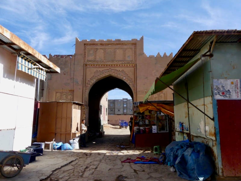 Na 60km waren we in Errachidia, een garnizoensstad stad zonder veel karakter, gebouwd in begin 1900 in een ruitpatroon. We wilden onze blauwe gasfles laten vullen of omruilen , maar nee meneer, deze is niet van Salam, in Midelt kan het wel. We zijn naar de Acima gegaan voor boodschappen, Acima is onderdeel van de Marjane holding maar met een beperkter assortiment, geen blauwaderkaas of camembert. En toen we kwamen stonden er 5 auto’s van klanten en bij ons vertrek slechts 4. Sinds de Marjane in Saoedische handen is overgegaan en geen alcohol meer verkoopt hebben Marokkanen er niet veel meer te zoeken lijkt het.