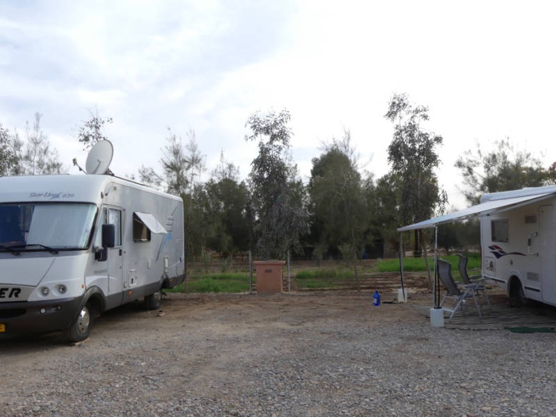 De camping heeft niet zo’n goede naam,althans bij een aantal camperaars niet, die vinden dat er zwerfhonden zijn, dat er zwerfafval is en dat het personeel onvriendelijk en de handelaren opdringerig zijn, aldus een aantal negatieve beoordelingen op CC. Wij hebben andere ervaringen, tot nu toe dan vandaag en de 2x eerder die we er geweest zijn, de laatste keer in 2014. Die zwerfhonden overlast dat moet vannacht blijken, nu loopt er af en toe één kwispelstaartend voorbij, de handelaren hebben kennelijk een cursus klantvriendelijkheid gehad sinds de laatste keer dat we hier waren, ook het personeel is aardig en behulpzaam. Aan het eind van de middag kwam een oudere man met eieren langs, 1dh per stuk. We hadden er nog wel wat maar hebben er 4 gekocht en betaald met en munt van 5dh, laat de rest maar zitten. Daar wilde hij niets van weten, we moesten en zouden er nog een ei bij krijgen…………..