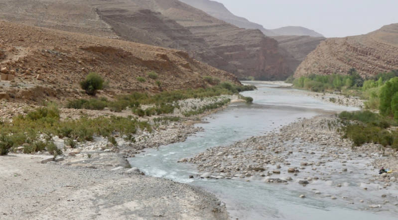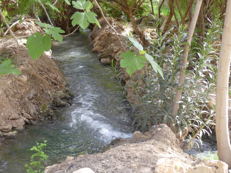 De oases kunnen slechts overleven door water, soms aangevoerd door rivieren , in het geval van de oase waar wij hebben verbleven is dat de rivier de Ziz. Maar door menselijk ingrijpen wordt de oase ook in tijden van droogte nog bevloeid door grondwater dat soms op natuurlijke wijze naar boven komt maar meestal moet worden opgepompt uit putten of uit ondergrondse kanaaltjes. Werd eerst voor het oppompen een door gas of diesel aangedreven pomp gebruikt, tegenwoordig zie je steeds meer zonnepanelen die voor de benodigde energie zorgen. Irrigatie kanalen zorgen ervoor dat ieder gedeelte van de oase een bepaalde tijd bevloeid wordt, de kanaaltjes kunnen door schuiven of dammetjes worden afgesloten zodat de looprichting van het water veranderd.