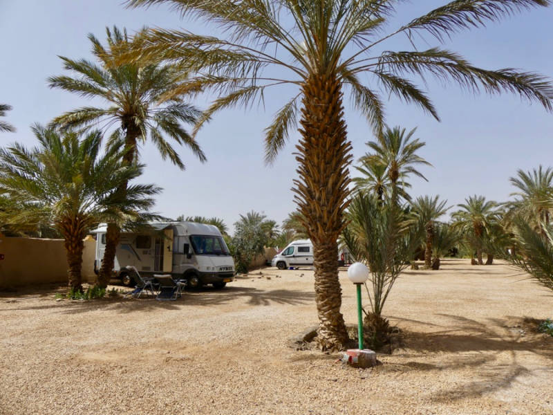 We staan nu op camping Chez Karla, een grote camping, de 2 kleine campings van de afgelopen dagen hebben onze voorkeur, het ziet er wel goed verzorgd uit. We kregen thee van de eigenaar met daaraan gekoppeld de vraag of we een excursie met een 4WD de woestijn in wilden.