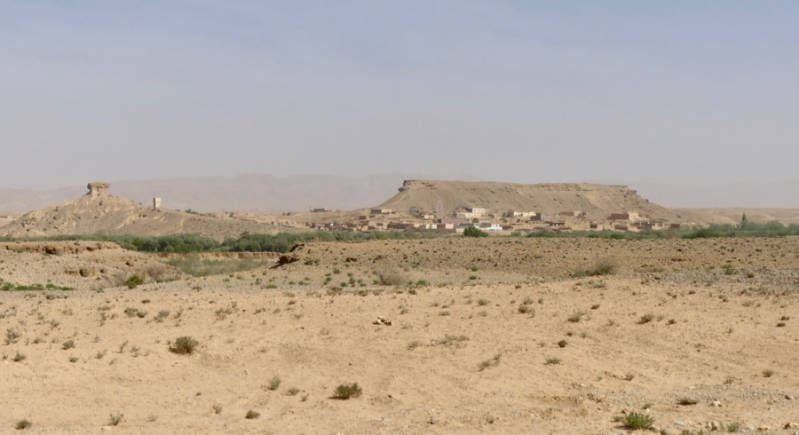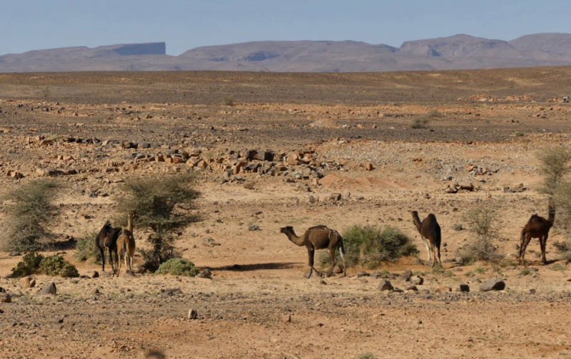 Het dorp Taghbalte en verder onderweg naar Tazzarine, de dromedarissen hier niet voor transport of toeristenplezier maar gehouden voor het vlees
