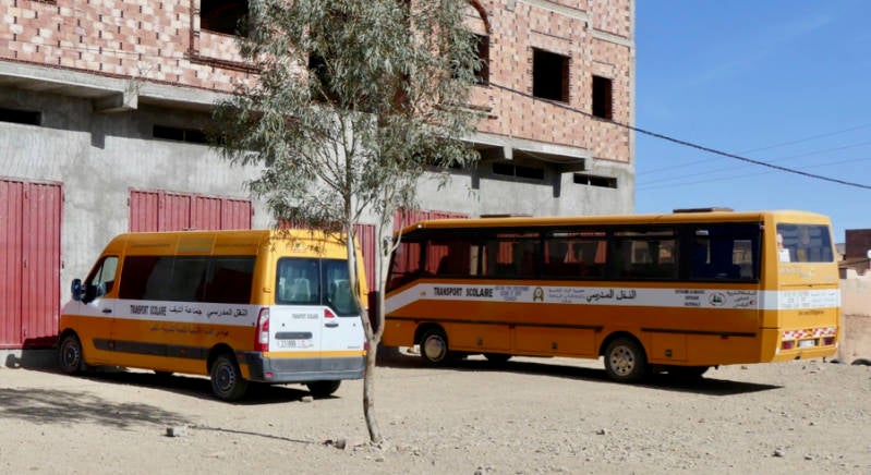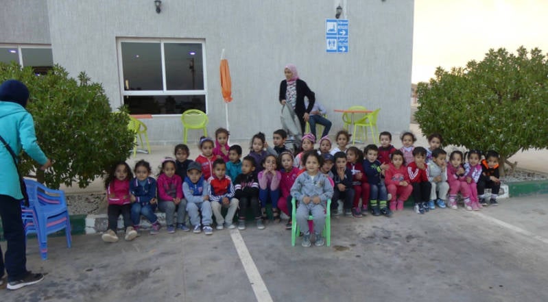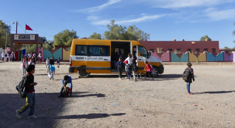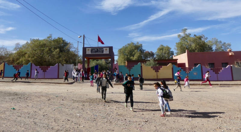 De tekst op het bord bij de school is twee-talig: in het Arabisch en in het Berbers(Tamazight). In die talen worden de kinderen ook onderwezen, ook in het Frans