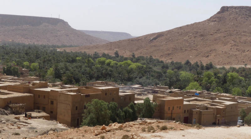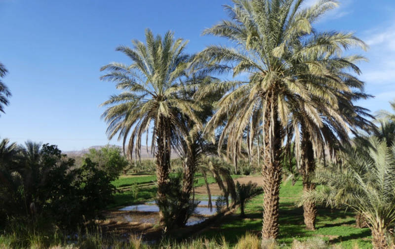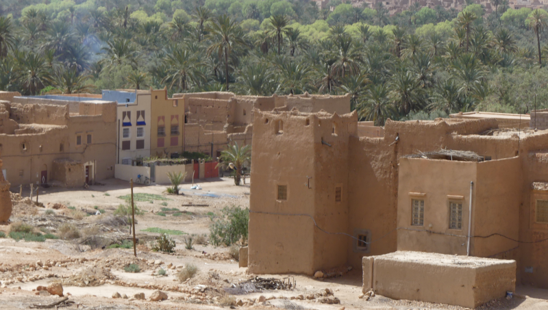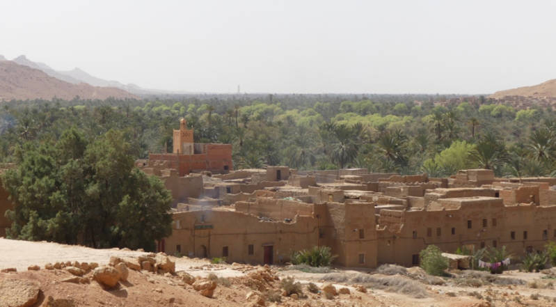 De regio waar we nu zijn heet Tafilalt en de oase in de Ziz vallei heet de Tafilalt oase die zich over een afstand van wel 50km uitstrekt. Er staan hier 800.000 dadelpalmen, de meeste inwoners van de dorpen en ksour zijn hier voor hun levensonderhoud van afhankelijk. De palmen worden bedreigd door een schimmelziekte en door de droogte, ze moeten worden bevloeid door de rivier de Ziz maar daar staat hier zelden water in. De dadeloogst is in oktober.