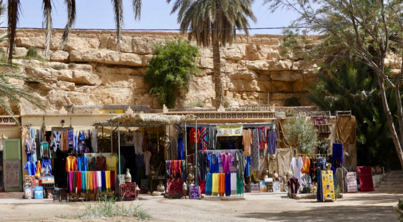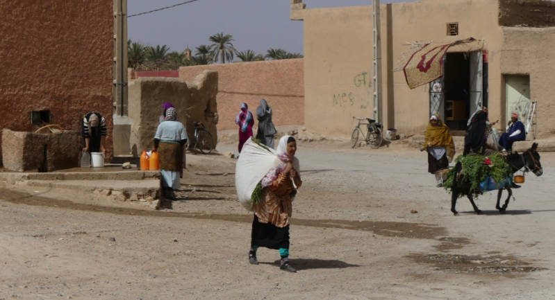 De oase was vroeger ook een onderdeel van een trekroute, het was een belangrijk knooppunt en pleisterplaats van handelaren met kamelen, onderweg naar bv Mali vv. Deze karavanen brachten afgewerkte producten en zout naar het zuiden en namen zilver, goud, ivoor en slaven mee terug. Afstammelingen van die slaven vind je nu nog terug in Zuid Marokko, ze worden Haratin genoemd. Vroeger stonden ze in laag maatschappelijk aanzien bij de overige bewoners van de oases, ze waren makkelijk te kennen aan hun donkere huidskleur. Die andere bewoners waren ‘blanke’ Berber en Arabische stammen en de Haratin werkten als slaven op hun land wat tot in het begin van de vorige eeuw heeft geduurd, deze slavernij. De verschillende etnische groepen leefden samen maar gescheiden in de ksour, de versterkte lemen dorpen. Zij zorgen ook collectief voor de irrigatiesystemen van de oases. Ook nomaden stammen hebben zich in de loop van de tijd voor een deel permanent in de oases gevestigd, over een multiculturele samenleving gesproken.