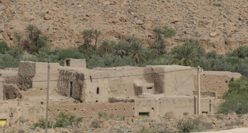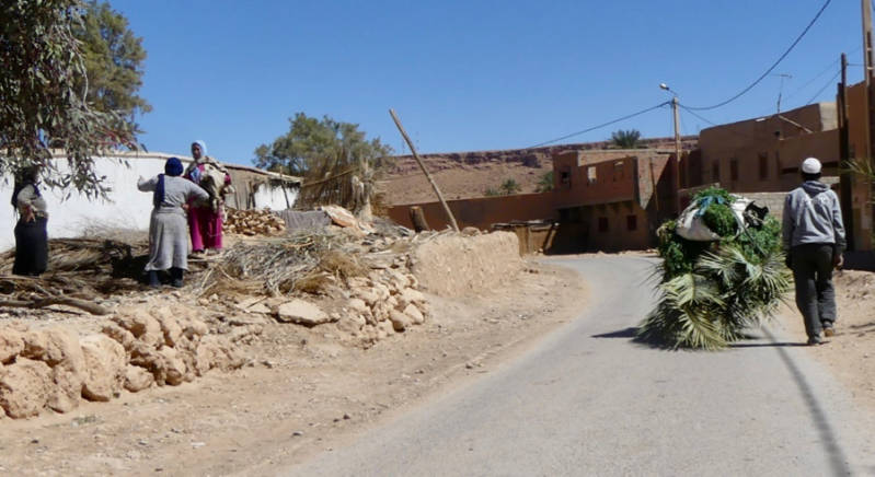 De ksar is nog bewoond maar water is er niet , wel elektra. Het water wordt door vrouwen bij tappunten in kannen of emmers gehaald. De was wordt gedaan in de irrigatiekanalen die voor de bevloeiing van de akkers zorgen, de vijgenbomen droegen volop vruchten. Bijzonder is dat de koeien en ezels in kralen van leem buiten de muren worden gehouden. Evenals 3 jaar geleden sprak de sfeer ons weer aan, de vrouwen in de ksar zijn trouwens niet gesluierd en zijn tamelijk vrijpostig.