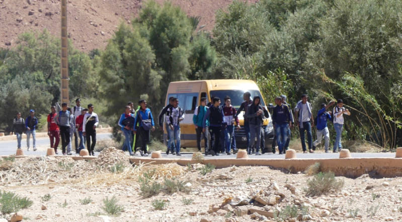 Vanmiddag zijn we nog naar het dorp gewandeld, Alnif is een centrum van allerlei scholen. Om 17.00 uur gingen de scholen uit en krioelde het van de kinderen, er waren veel schoolbusjes in de straten. Alnif is ook het centrum van de verkoop van trilobiten die hier en in de wijde omgeving gevonden worden.