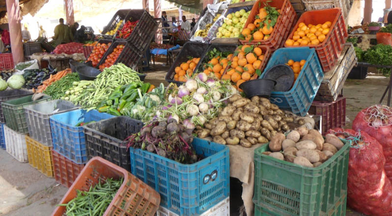 Een leuke souk in Anif, waar we zonder tijm maar met aardappels weer wegreden. De vrouwen hebben vaak een zwarte doek met een band met gekleurde blokjes