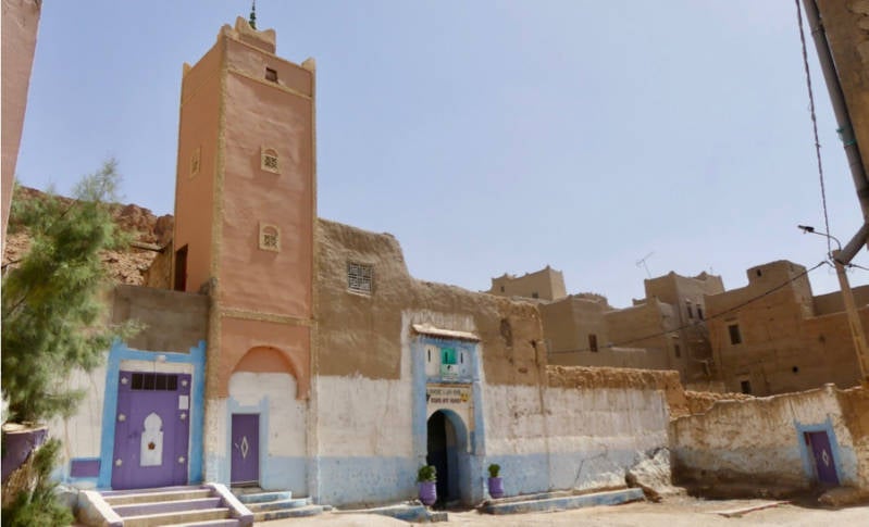 Omdat de Ziz hier langs komt hoor je rietzangers zingen en de buulbuuls kwinkeleren er lustig op los, we vinden het hier wel paradijselijk. Door de palmentuin langs de Ziz kun je mooi wandelen, vrouwen doen de was, ezels komen met groenvoer langs.