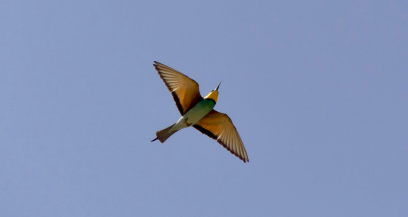 Er vliegen regelmatig bijeneters over , we bevinden ons zeker onder een trekroute, ze blijven wel hoog , gelukkig hebben we ze al vaker gefotografeerd, deze reis nog in Mhamid.