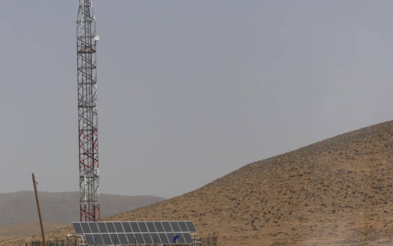 de irrigatiekanaaltje in de oase, akkertjes hebben mooie fris groene kleuren. Pompstation op zonne-energie evenals telefoonmasten in the middle of nowher We hebben waterpompen op zonne-energie op meerdere plaatsen in Zuid Marokko gezien, er zijn zo lijkt het wel, wat meer akkertjes ontstaan de laatste jaren. Zou zo misschien het oprukken van de woestijn een halt toe geroepen kunnen worden als dit op grotere schaal gaat gebeuren, dankzij de zonne-energie?