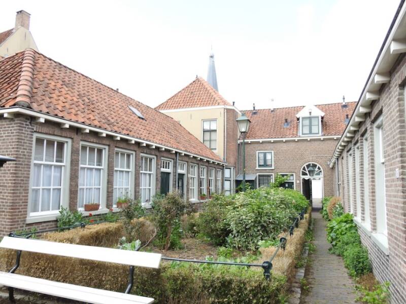 Niet ver daar vandaan is de Sareptahofje, in 1895 gesticht door een domineesdochter, Elisabeth Bax en speciaal voor arme weduwen gebouwd. Dit hofje is niet toegankelijk voor publiek. Toen een tante van ons weduwe werd heeft ze daar in de jaren 60 nog een tijdje gewoond.