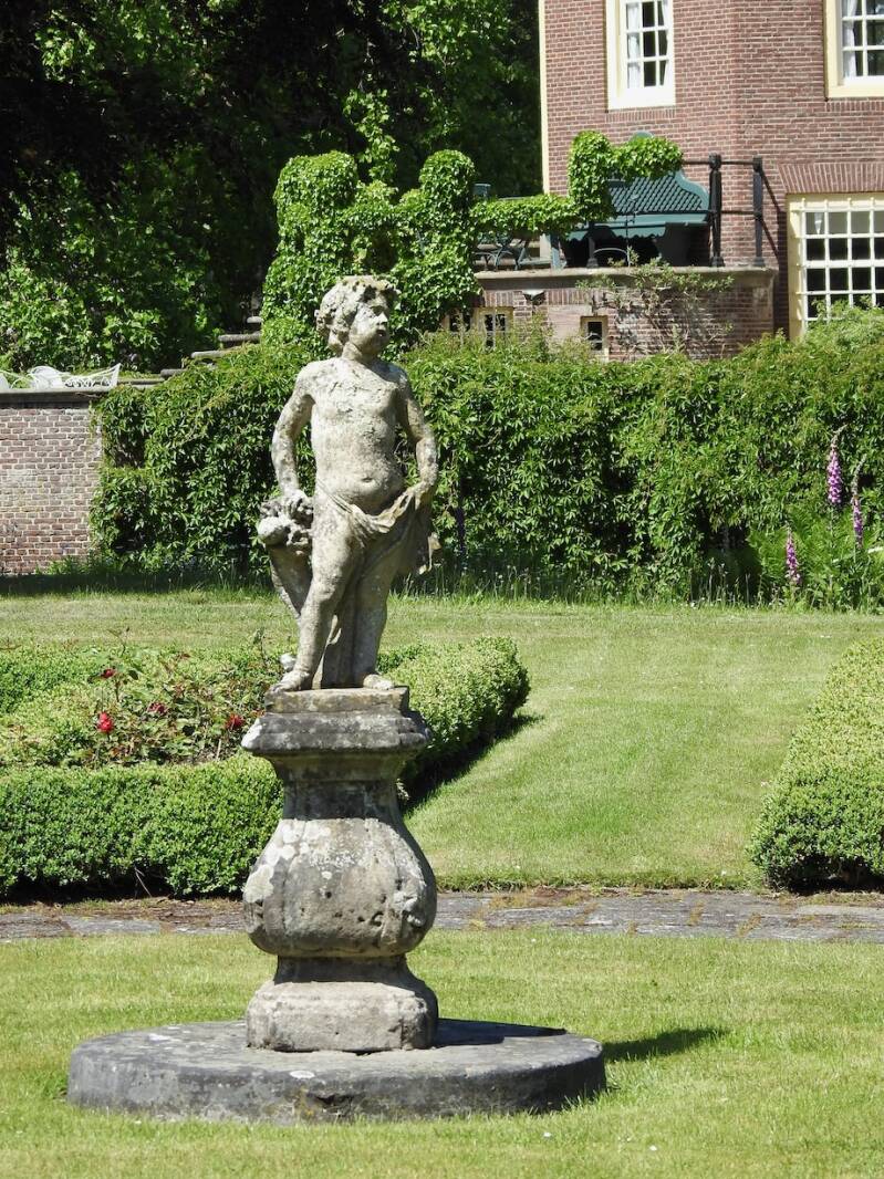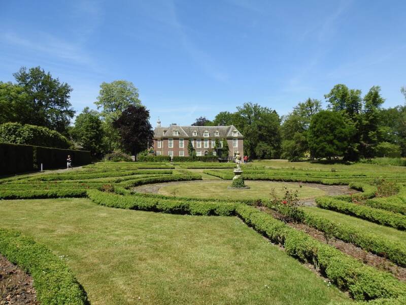 We hebben een schitterende wandeling gemaakt door de tuinen. De tuinen bieden een verrassing om iedere hoek om het maar eens lyrisch te omschrijven, met de Baakse beek ( die ook over landgoed hackfort stroomt)en vijvers, heemplanten en varens, een slingerende beukenhaaggang van 100 meter, bruggen, fonteinen en beelden. Rondom het landhuis, laten de rozentuin, de moestuin en de verdiepte ‘lage tuin’ met zijn borders en pergola een steeds wisselende combinatie van bloei en blad zien. De pergola was begroeid met oa clematis, rozen, kamperfoeli en passiebloem die nog niet in bloei was. Maar in de borders rondom de verlaagde tuin met fontein was zoveel moois te zien dat dat zeker geen gemis was. Ook niet dat de meeste rododendrons al een beetje over hun volle bloei heen waren. Al met al een must om die tuinen eens te bezoeken.
