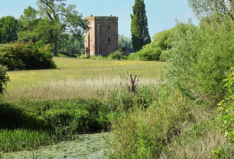 We hebben de laatste dagen gefietst en gewandeld hier in de omgeving . Het nieuwe natuurgebied, de Empese en Tondense heide, viel wat tegen omdat door de extreme droogte de vennetjes vrijwel allemaal droog waren gevallen. Mooi waren de fietstochten over de IJsseldijk richting Voorst langs de ruïnes van slot Nijenbeek , de bermen langs het fietspad zagen wit van de bloeiende margrieten. Slot Nijenbeek is een ruïne, de Donjon, van het oorspronkelijke kasteel (1230)wat op een strategische positie aan de IJssel lag en in de 80-jarige oorlog nog een rol van betekenis heeft gehad bij de verdediging van Deventer.Aan het eind van WOII hadden een paar Duitsers zich in het kasteel verschanst. Om ze te verjagen werd het kasteel door de Geallieerden onder vuur genomen. De aanbouw en het dak werden zwaar beschadig