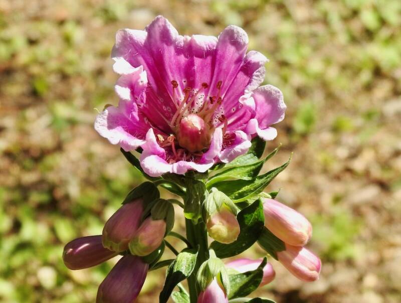 Een bijzondere digitalis(vingerhoedskruid )met een bloem in de top.