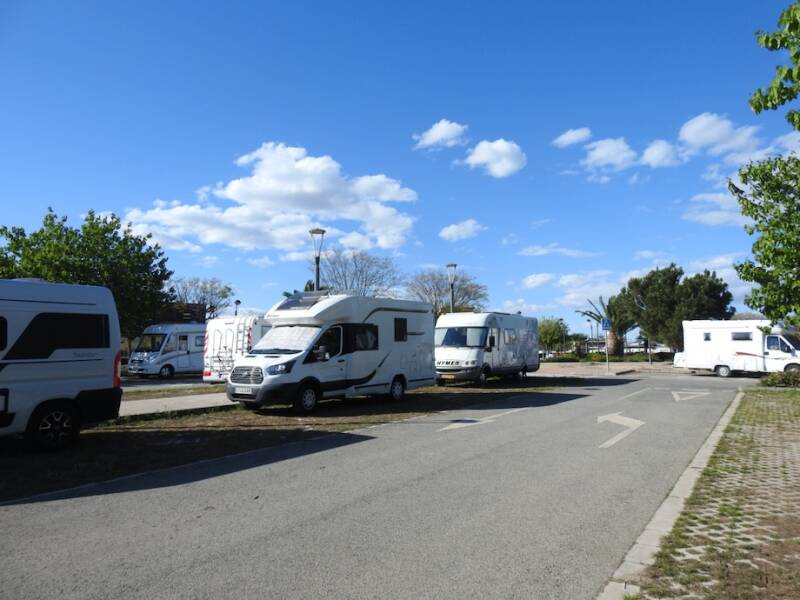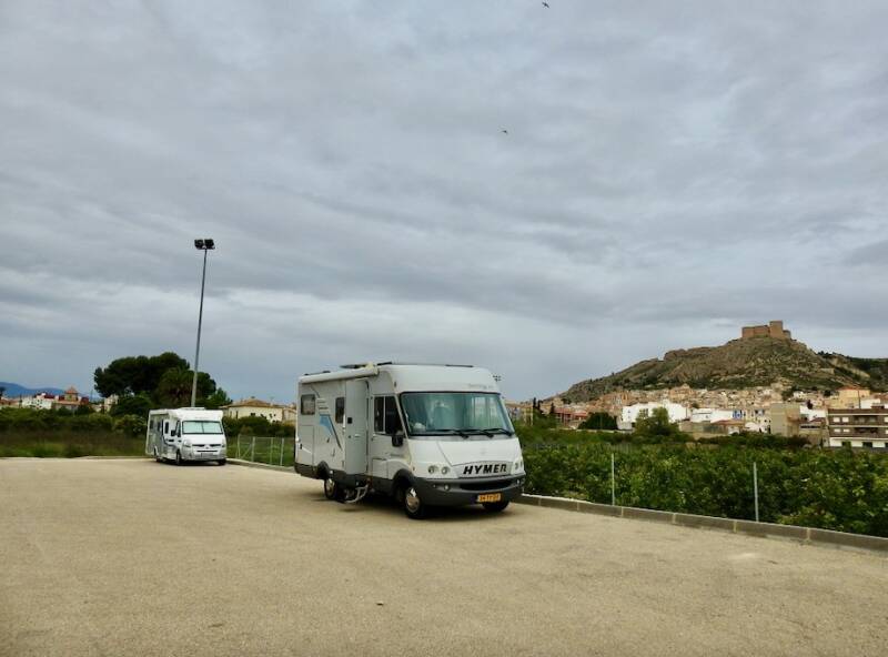 ’s Winters staan er altijd de nodige Nederlandse campers in Murcia, nu waren er misschien maar 1 of 2 andere dan wij. Hier staan Spaanse, een Zweedse en een Franse camper, maar daar reizen Nederlanders in die in Frankrijk wonen.