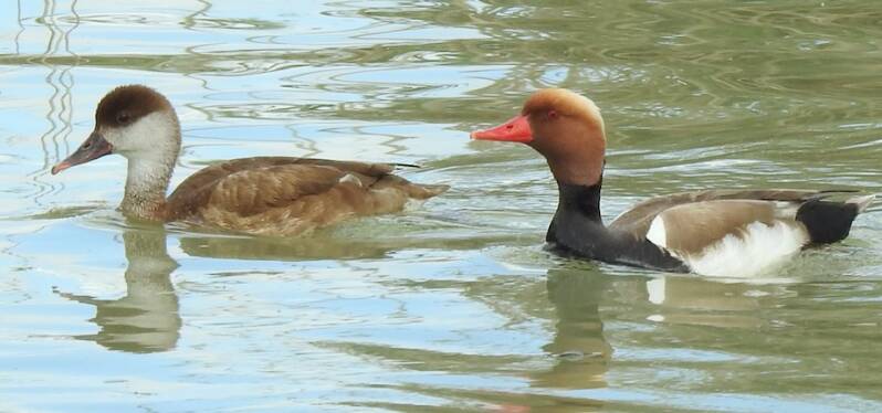En we hebben natuurlijk gelezen vandaag. In een uit de bodega meegenomen Duitstalig blaadje met regionaal Spaans nieuws las ik een artikeltje over de marmer eenden in El Hondo, gisteren hebben we daar een paartje gespot. Met een Europese subsidie van in totaal €6,4 miljoen is het gelukt om het aantal broedparen van deze zeldzame eendensoort, van 3 in 2013 tot 60 vorig jaar , te doen toenemen. Dit door een project waarbij door ingrepen zoals een stukje drooglegging van El Hondo, een optimale leefomgeving voor de marmereend is gecreëerd. Wel een leuke toevalligheid dat er juist nu een artikel over de marmereend in dat blaadje stond .