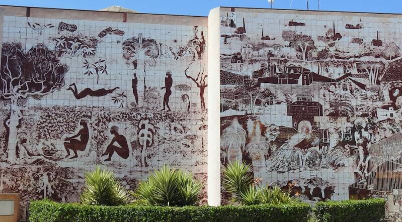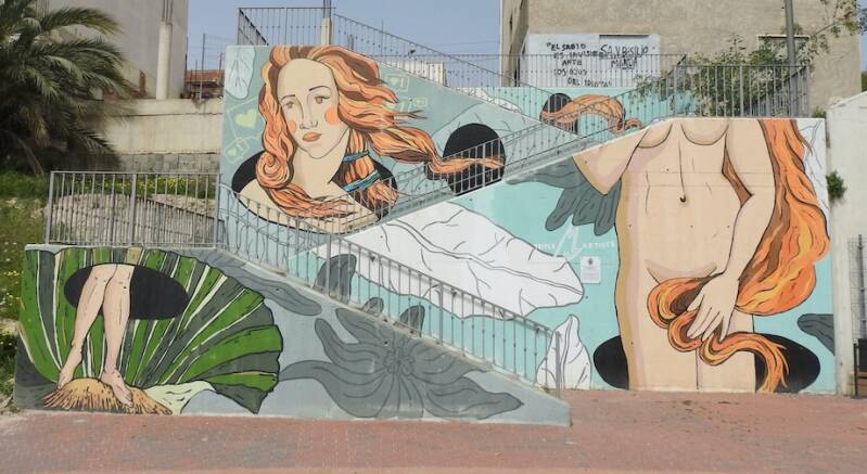 Deze muurschildering staat op de muurtjes van een trapje richting centrum en bestaat uit 3 verschillende delen.