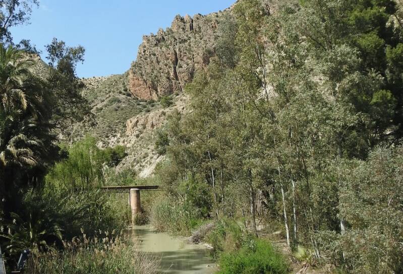 Het riviertje de Gorgos stroomt hier lieflijk tussen de rotsen, bij hevige regenval is dat wel anders.